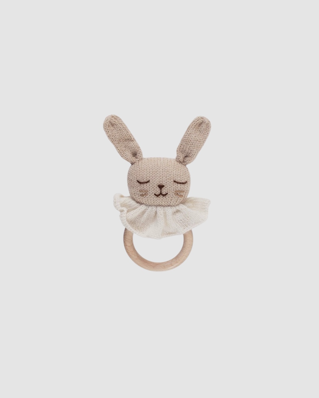 Cet anneau de dentition Lapin Sable Main Sauvage est bien plus qu’un simple jouet : c’est un compagnon de tendresse conçu pour apaiser bébé avec douceur lors de ses premières poussées dentaires. Son anneau en bois naturel est facile à attraper par les petites mains, tandis que sa tête de lapin tricotée à la main séduit par son charme intemporel.