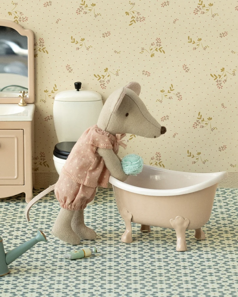 La baignoire souris Maileg rose est un accessoire miniature au charme vintage, parfait pour compléter la maison des souris. Idéale pour imaginer des moments du quotidien tout en douceur.