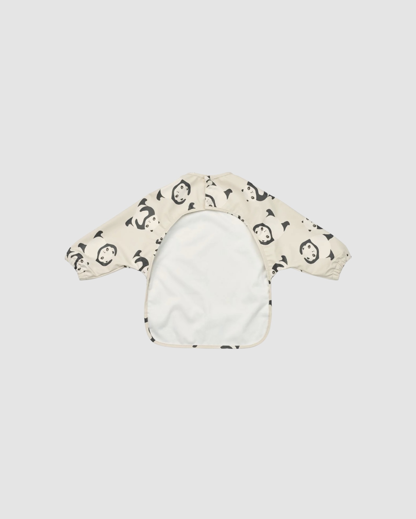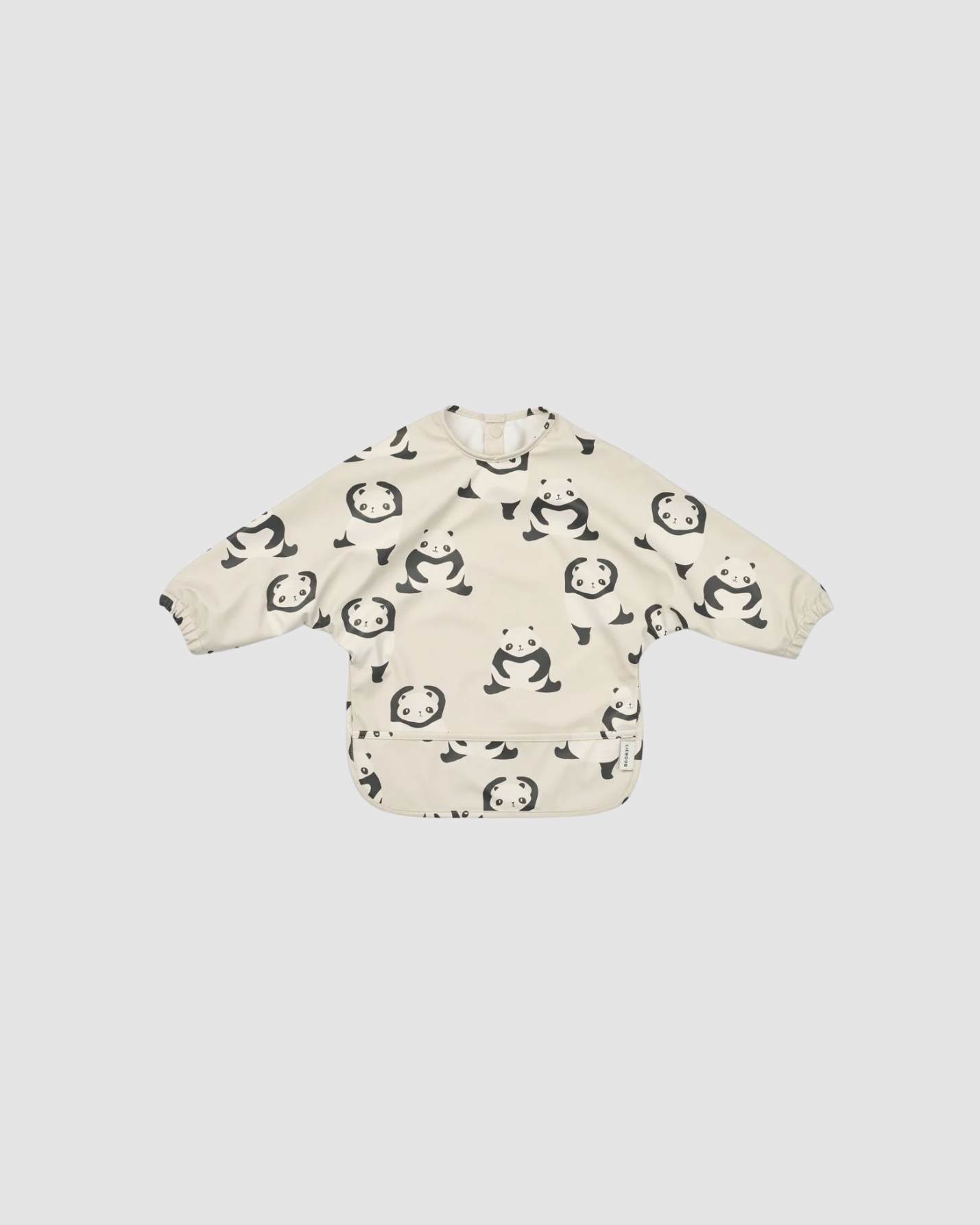 Avec son imprimé panda sur fond Sandy, ce bavoir avec manches apporte une touche ludique tout en restant élégant. Contrairement à des modèles plus chargés, son esthétique scandinave privilégie la simplicité et la douceur. De plus, ses teintes naturelles s’accordent facilement avec différents univers pour accompagner les repas du quotidien avec style.