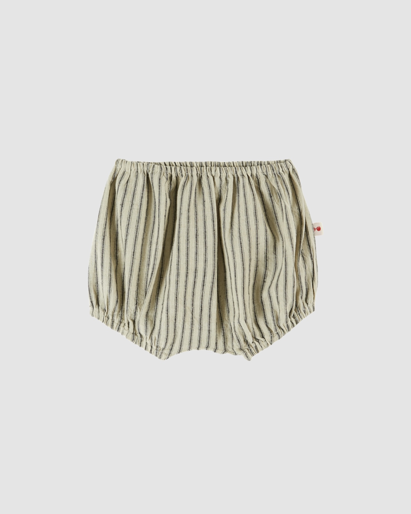 Le bloomer bébé Émile et Ida à rayures bitume est confectionné en toile de coton légère. Sa forme bouffante et sa taille élastiquée offrent confort et liberté de mouvement aux tout-petits.