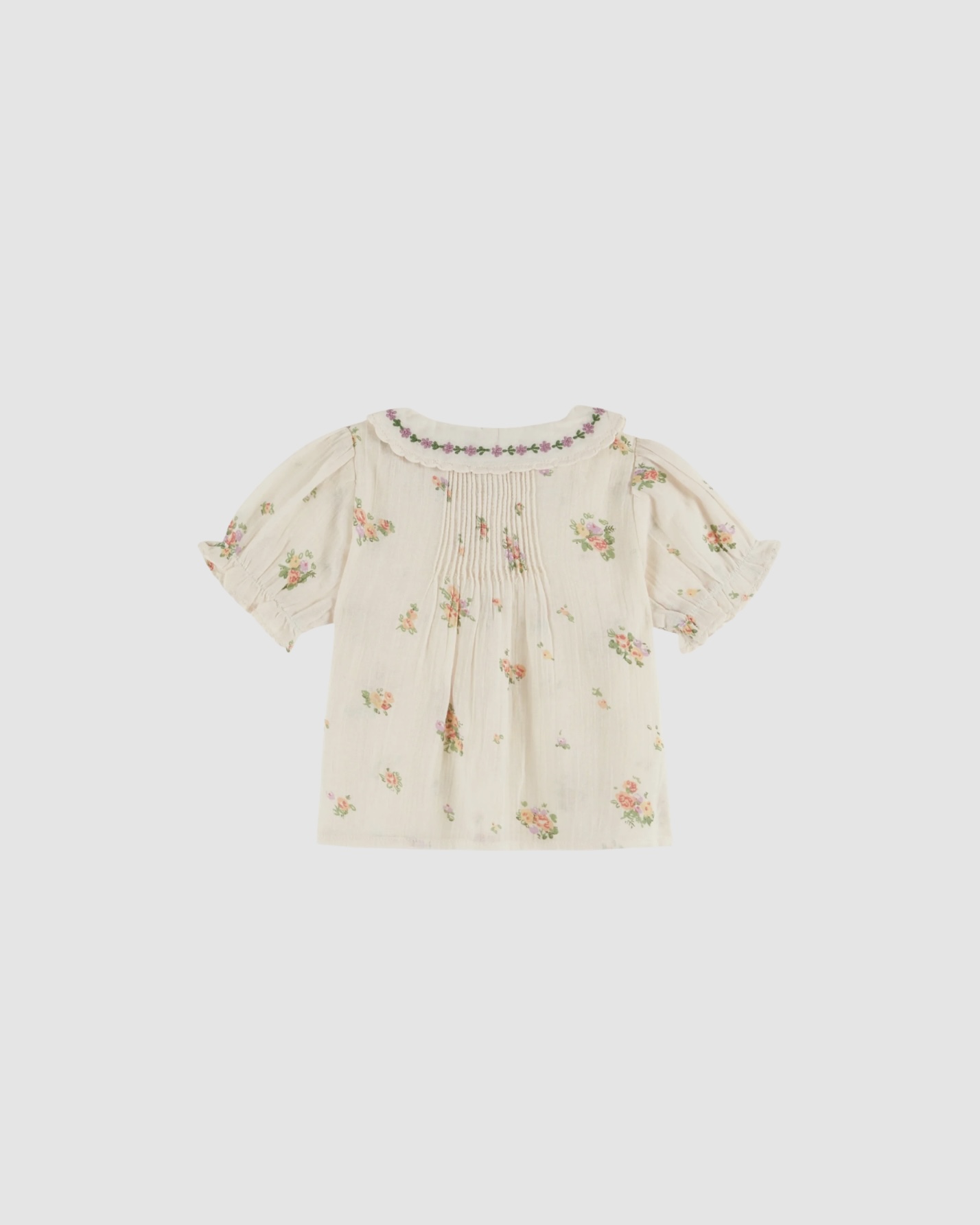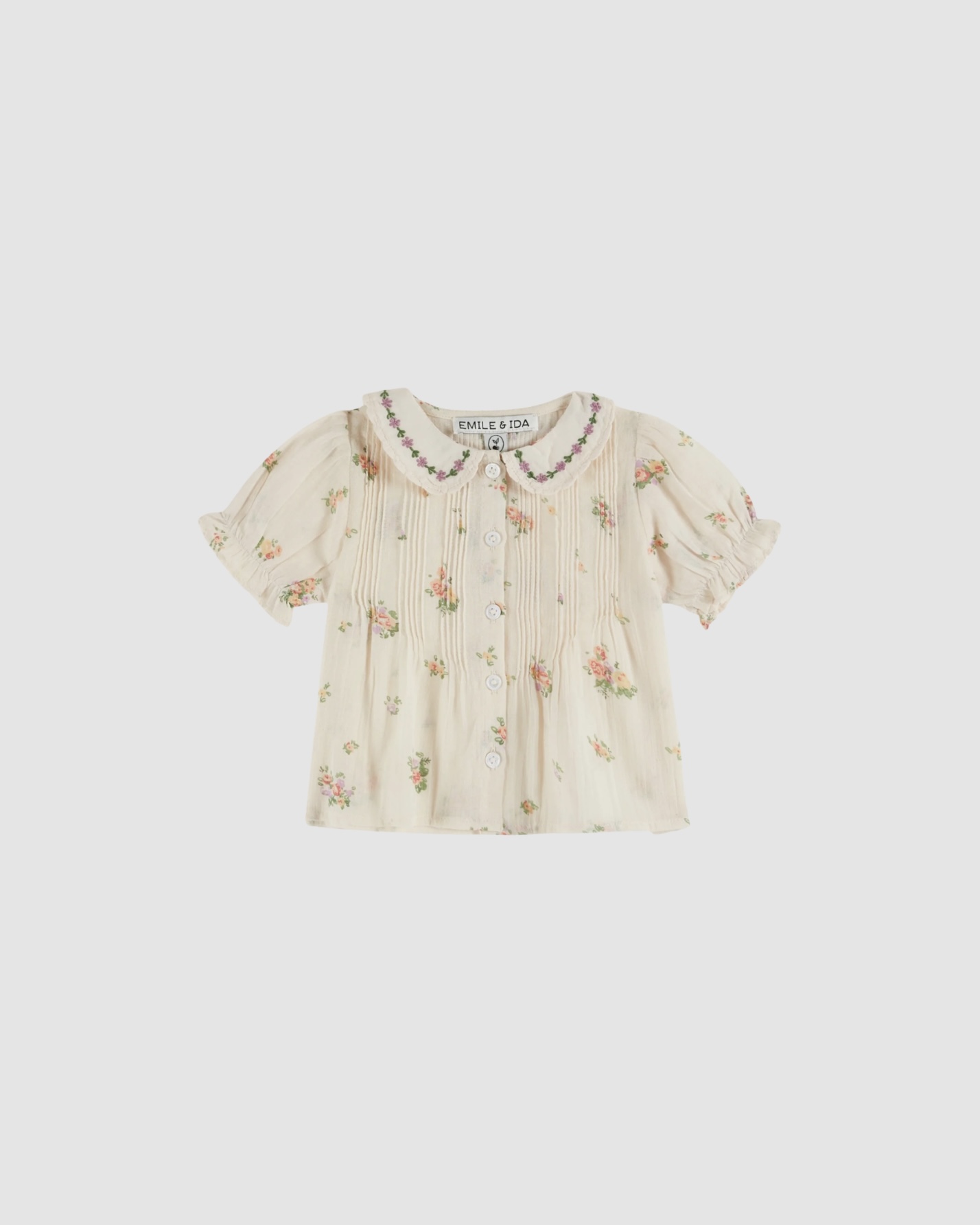 La blouse bébé fleurie Althea Émile et Ida est une pièce délicate qui allie confort et élégance. Confectionnée en gaze de coton biologique crème rosé, elle est imprimée de petits bouquets de fleurettes en all-over, pour un rendu doux et poétique.