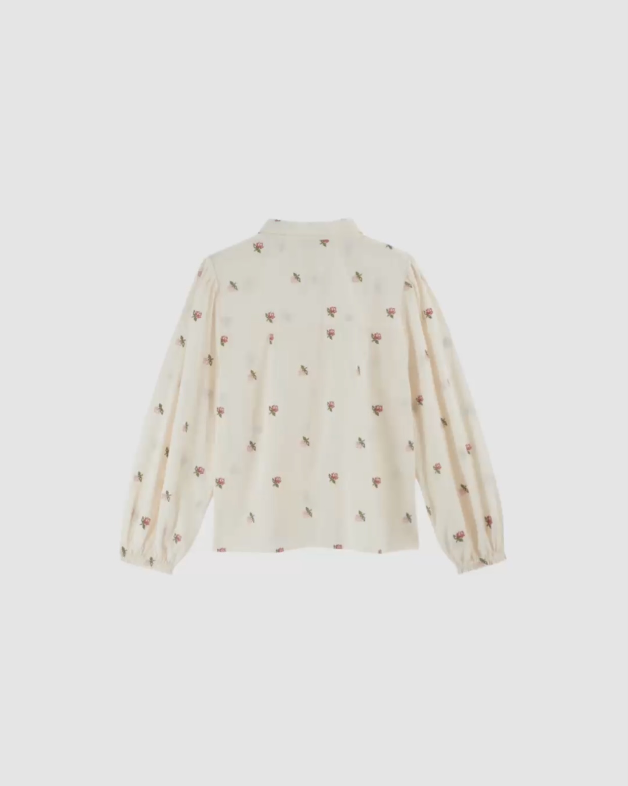 Blouse femme écrue en coton brodé, signée Émile et Ida. Un modèle raffiné, souple et délicatement orné de roses pour un style poétique et féminin.