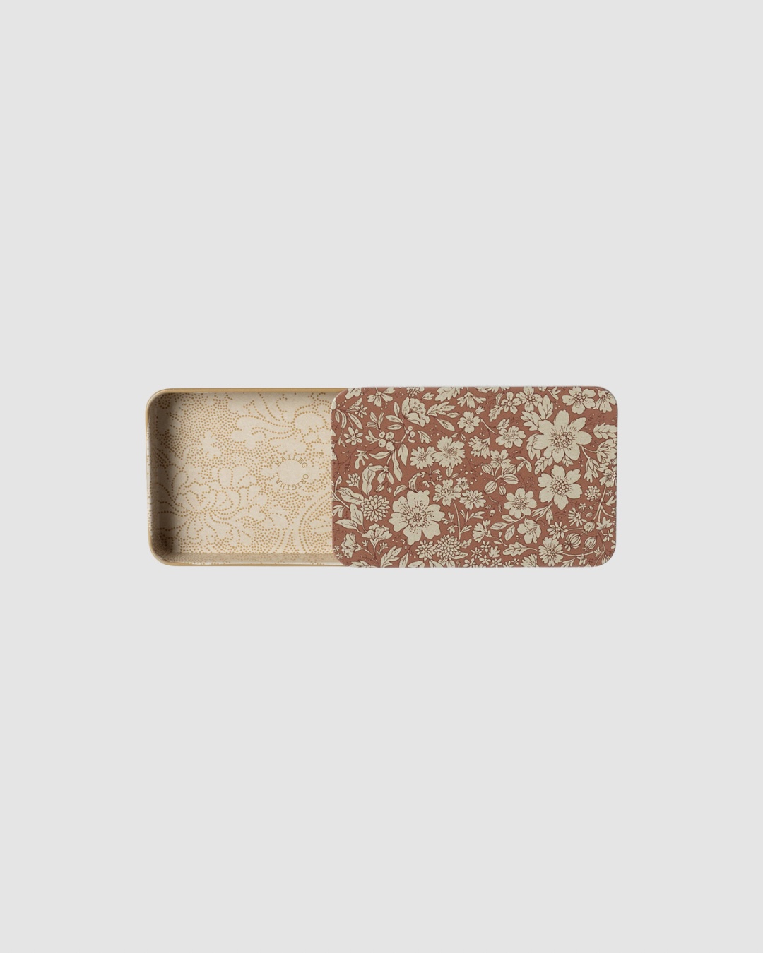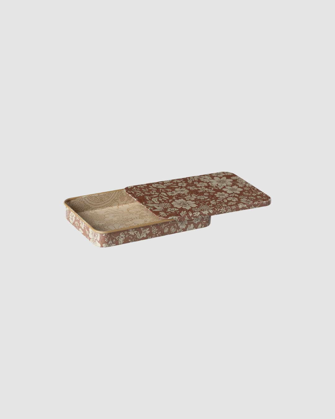Charmante boîte en métal coulissante Maileg, ornée du motif fleuri Blossom Heather. Parfaite pour ranger de petits trésors, bijoux ou cartes-cadeaux avec une touche poétique.