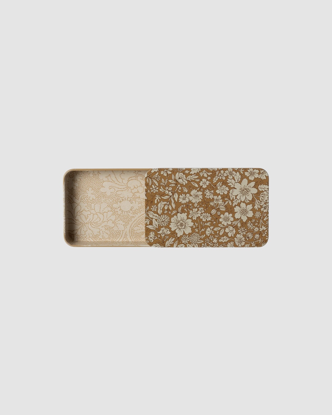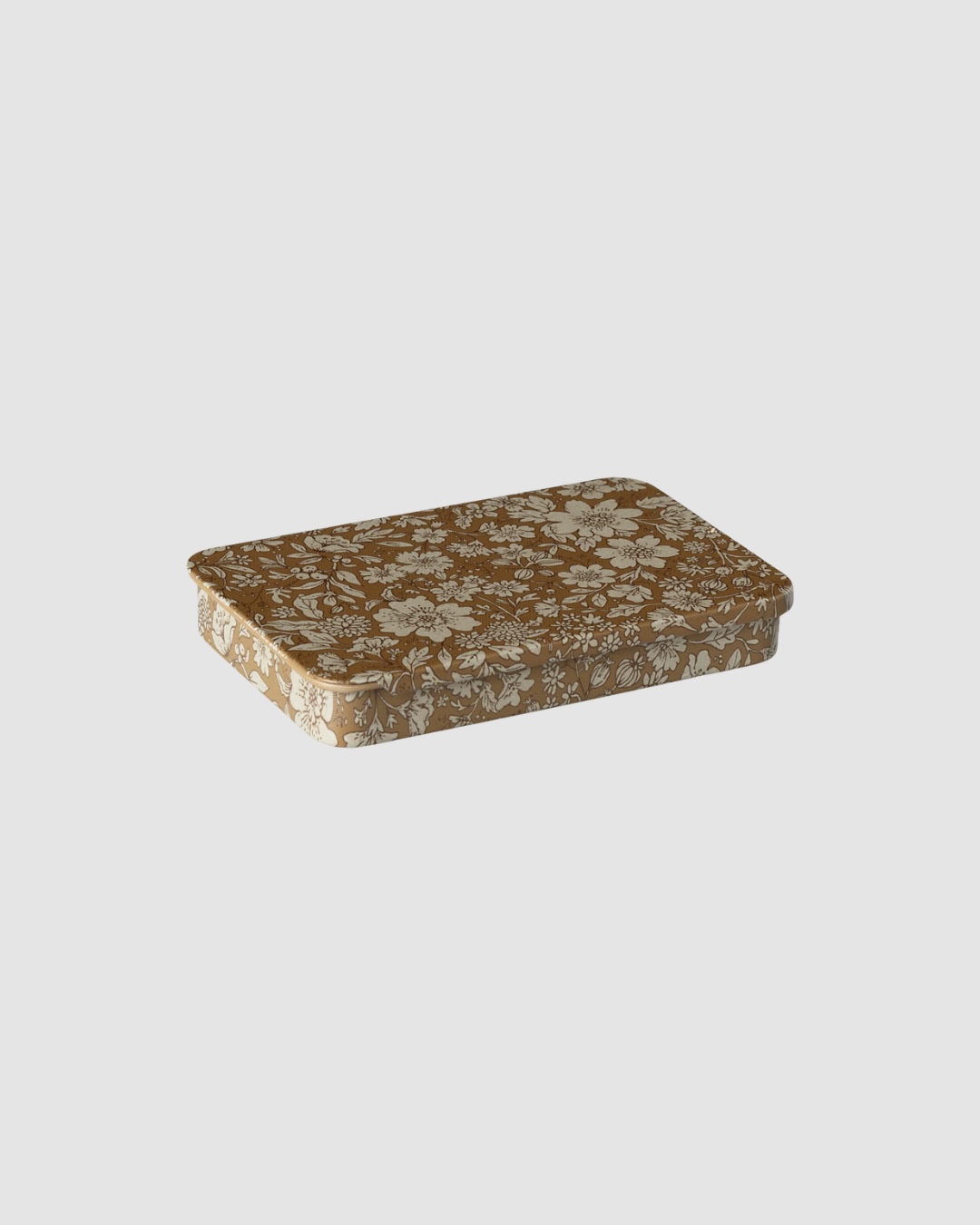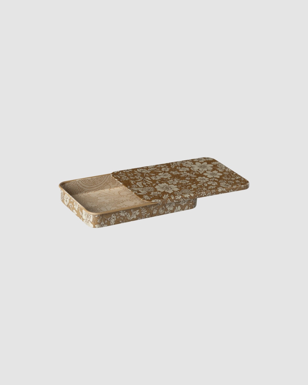 La boîte en métal coulissante Maileg est un indispensable pour celles et ceux qui aiment les jolis objets du quotidien. Pratique et poétique, elle combine fonctionnalité et douceur dans un design inspiré des boîtes anciennes. Son motif Blossom Ocre, à la fois fleuri et chaleureux, s’accorde parfaitement avec l’univers délicat et intemporel de la marque danoise.