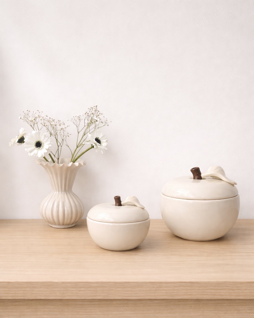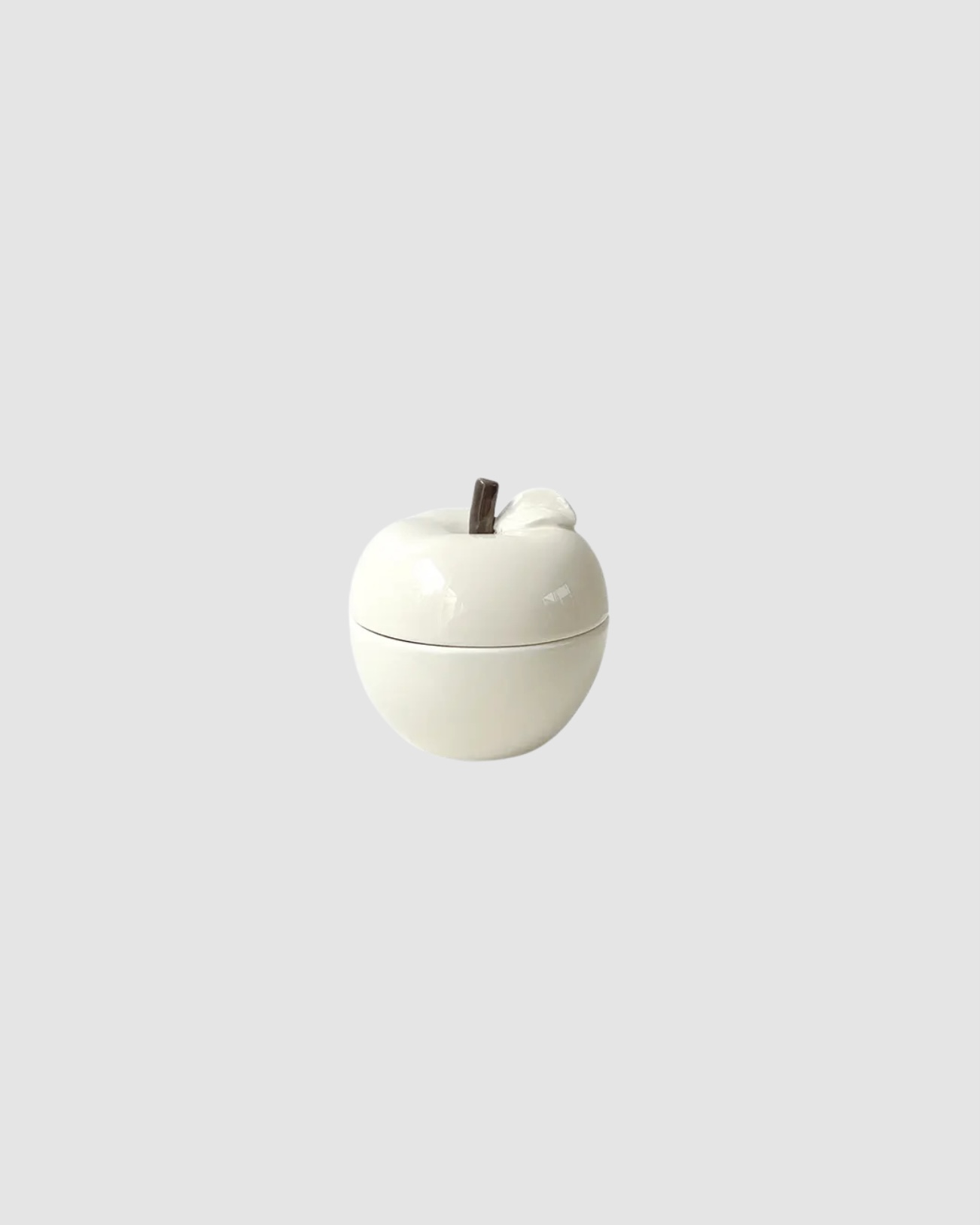 La Bougie Pomme Beige Opjet associe un parfum délicat à un véritable objet décoratif au charme rétro. Son contenant en céramique, façonné en forme de pomme, évoque immédiatement une esthétique chaleureuse inspirée des années 1980. Ainsi, elle trouve naturellement sa place dans un intérieur contemporain comme dans une ambiance plus vintage.