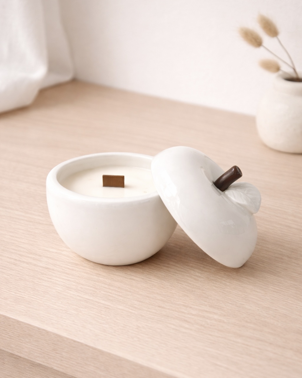 Une fois la cire entièrement consumée, le contenant en faïence ne perd pas son utilité. Au contraire, il devient une boîte décorative réutilisable, parfaite pour accueillir de petits objets du quotidien. De cette manière, cette pièce continue à vivre dans votre décoration.