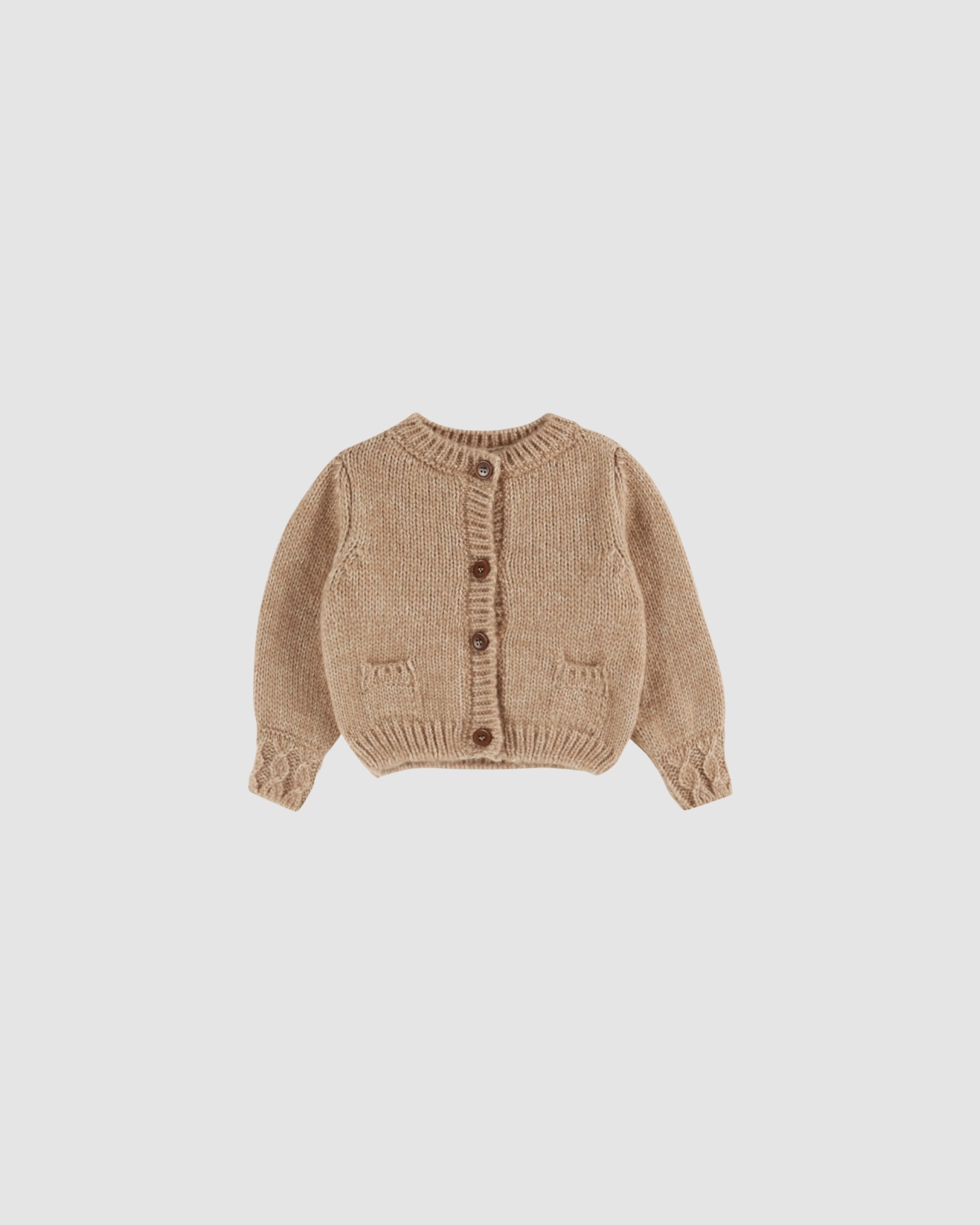 Le cardigan ultra doux beige Émile et Ida enveloppe bébé de confort grâce à son mélange mérinos-coton. Sa coupe droite, ses poches avant et ses finitions torsadées en font un indispensable élégant et pratique.