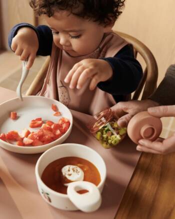 Le Coffret de repas Vivi Circus de Liewood est un indispensable pour accompagner les premiers repas des tout-petits. Il comprend une tasse à deux anses, un bol, une assiette à rebords et une cuillère ergonomique, tous conçus en silicone de qualité alimentaire.