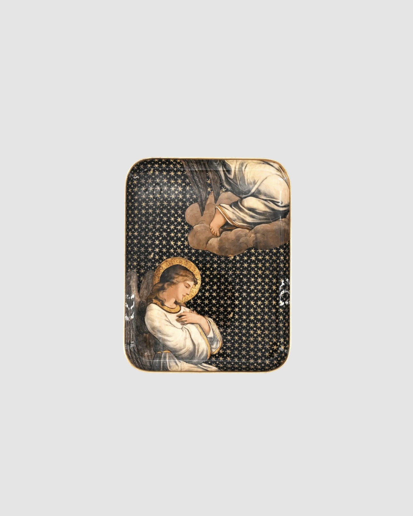 Le demi plateau Ange Boncoeurs nous plonge dans l’univers singulier et sensible de la marque, où l’imaginaire, l’art et l’artisanat se rencontrent. Illustré d’un ange délicatement représenté sur un fond étoilé profond, ce plateau attire immédiatement le regard et apporte une atmosphère à la fois douce, mystique et raffinée à votre intérieur.