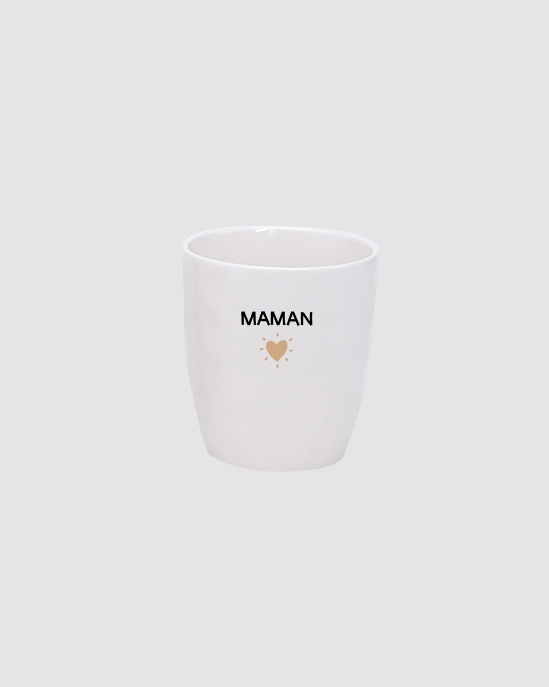Gobelet message Maman doré – Opjet Paris en faïence blanche (180 ml). Un design raffiné avec inscription dorée et cœur stylisé, idéal pour un café ou une jolie idée cadeau.