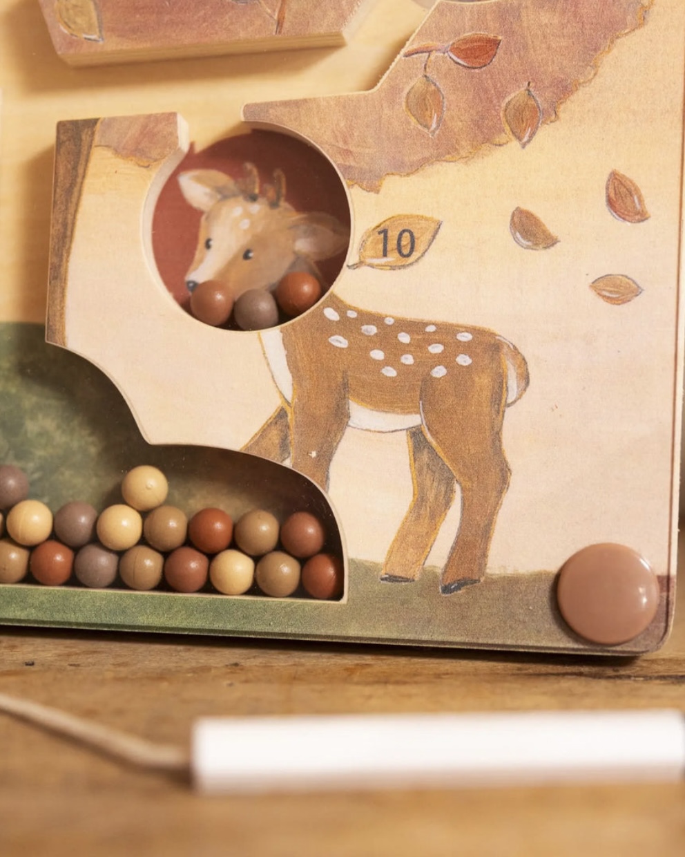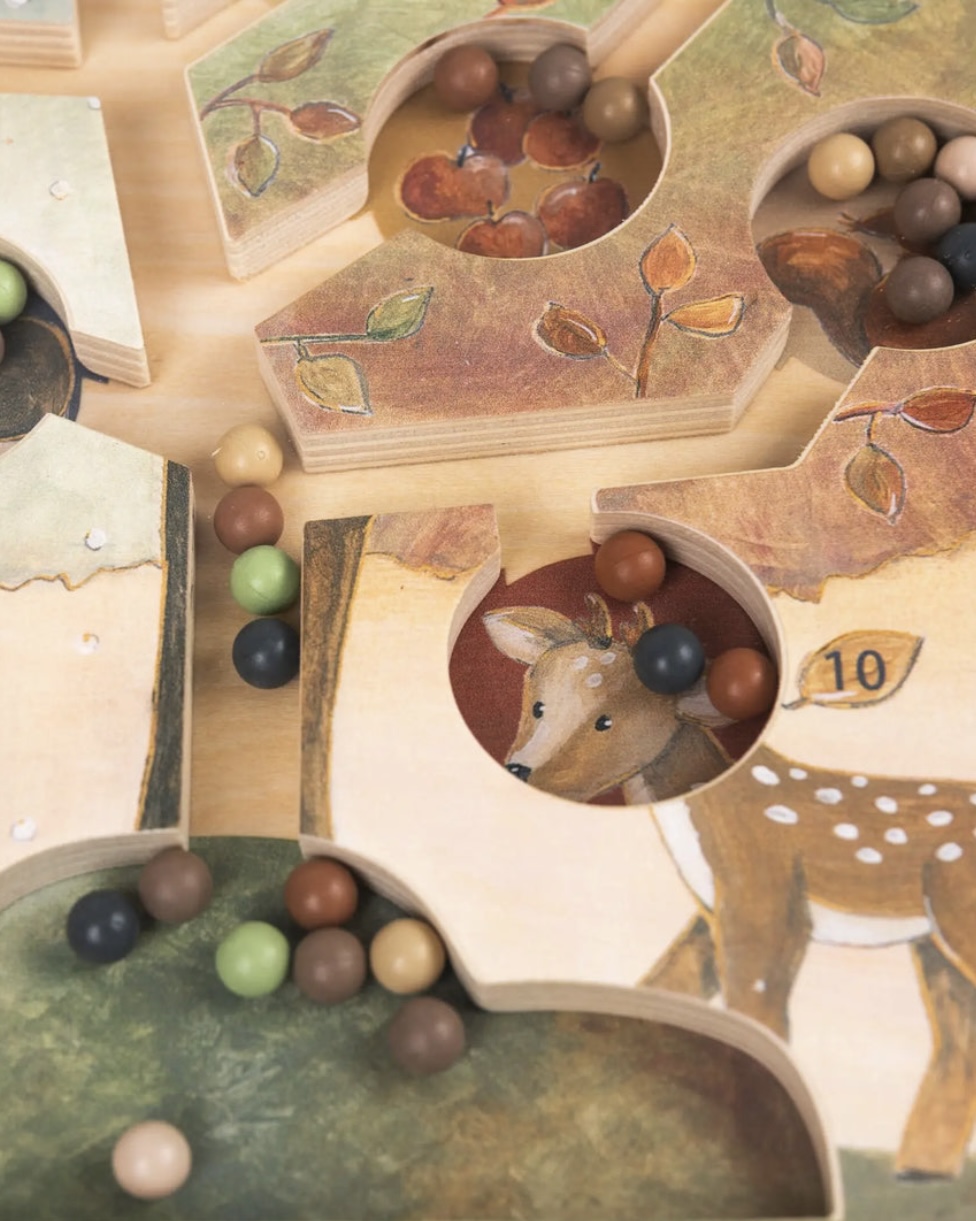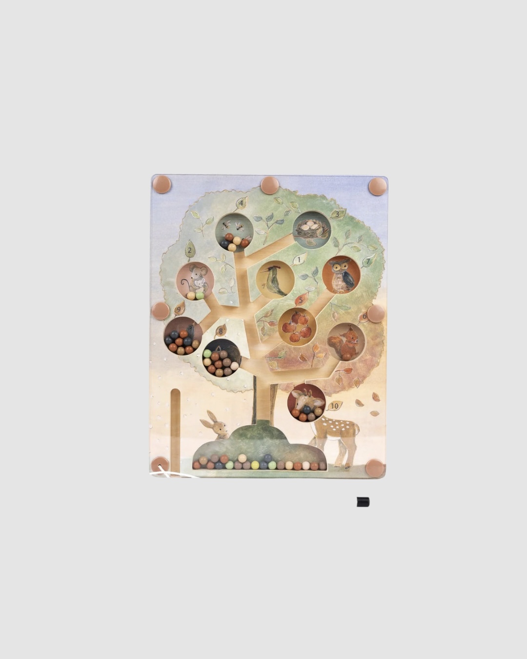 Le plateau en bois illustré d’un arbre foisonnant de détails transporte les enfants dans un univers poétique. Chaque passage invite à la découverte : une souris curieuse, une chouette observatrice ou encore un petit faon attendent leurs billes. Le labyrinthe magnétique Egmont Toys est conçu avec des matériaux de qualité et une finition soignée, garantissant sécurité et durabilité.