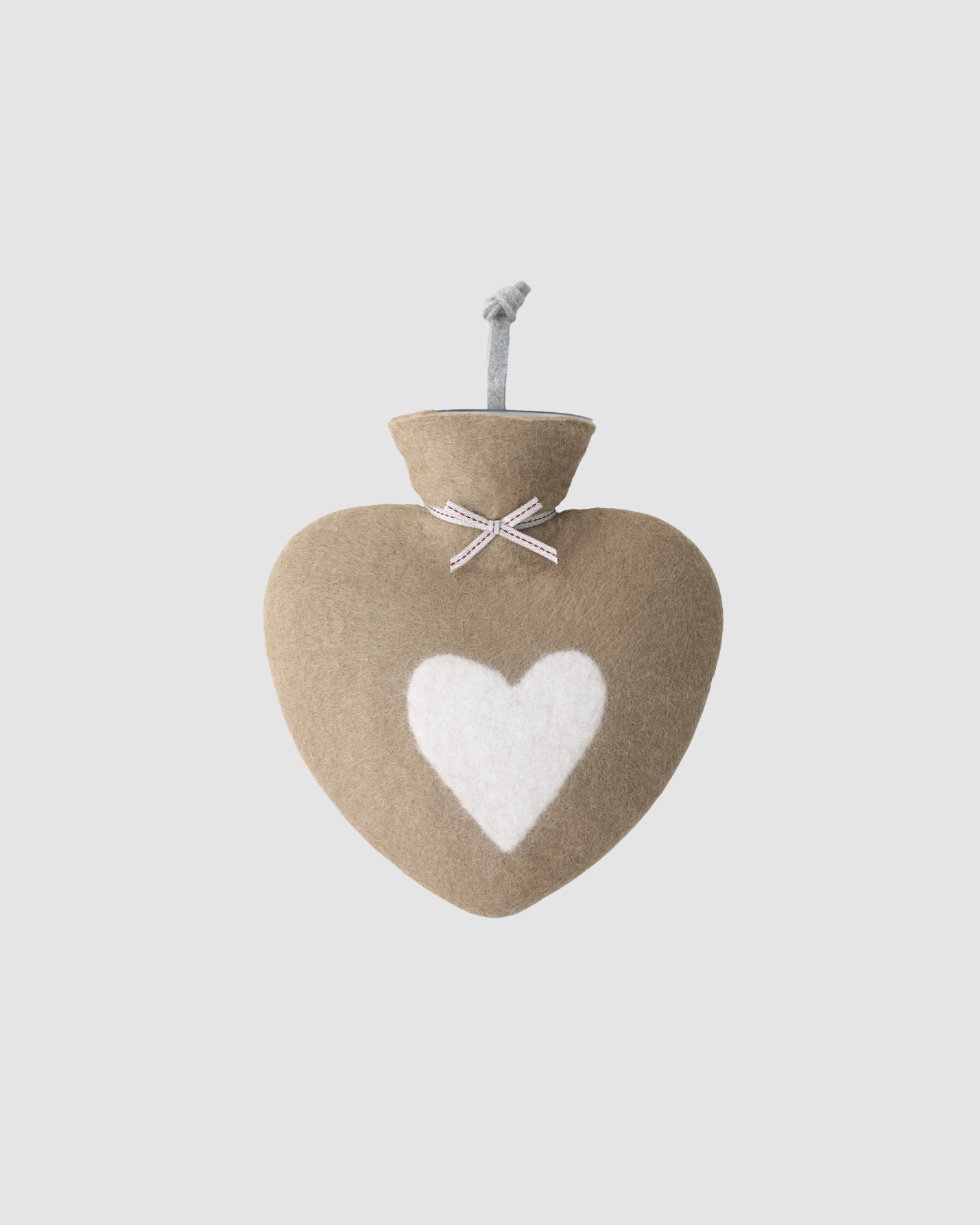 La Grande Bouillotte Cœur Dorothee Lehnen diffuse une chaleur douce et durable. Entièrement en laine feutrée et lavable en machine, elle charme par son motif cœur blanc et son aspect artisanal chaleureux.
