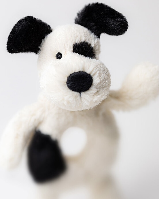 Le Hochet Bashful Black & Cream Puppy Jellycat est un petit compagnon tout doux, pensé pour éveiller bébé en douceur. Avec son pelage crème moelleux, ses oreilles noires et son regard attendrissant, il attire l’attention dès le premier instant. Léger et facile à attraper, il accompagne les découvertes sensorielles et les premiers jeux d’éveil.