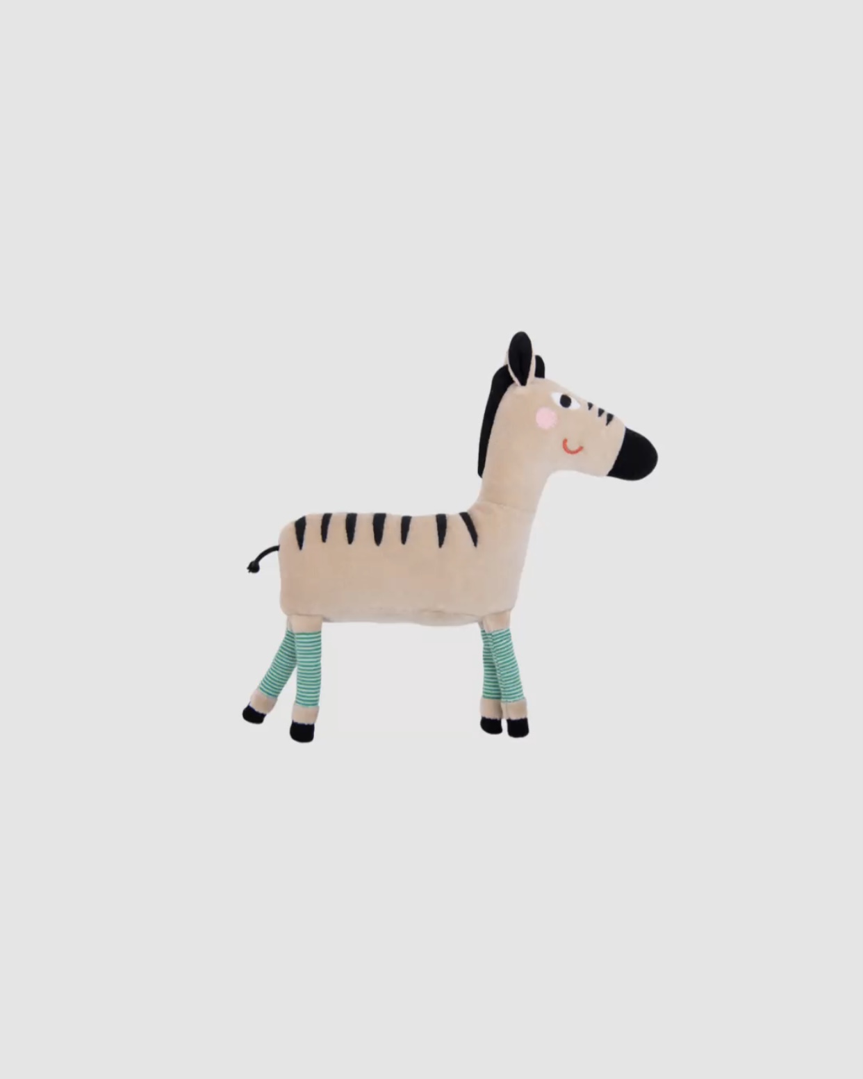 Ce joli zèbre en velours beige affiche une personnalité pleine de charme. Sa crinière contrastée, ses petites oreilles rondes et ses chaussettes rayées lui donnent un style unique qui attire immédiatement l’attention. Comme les autres animaux de la collection, il porte un sourire qui rassure et amuse bébé. Lorsqu’on l’agite, de petites billes situées dans son ventre émettent un son discret et agréable. Ce bruit doux stimule l’ouïe et encourage l’enfant à répéter le geste, participant ainsi à son éveil sensoriel.
