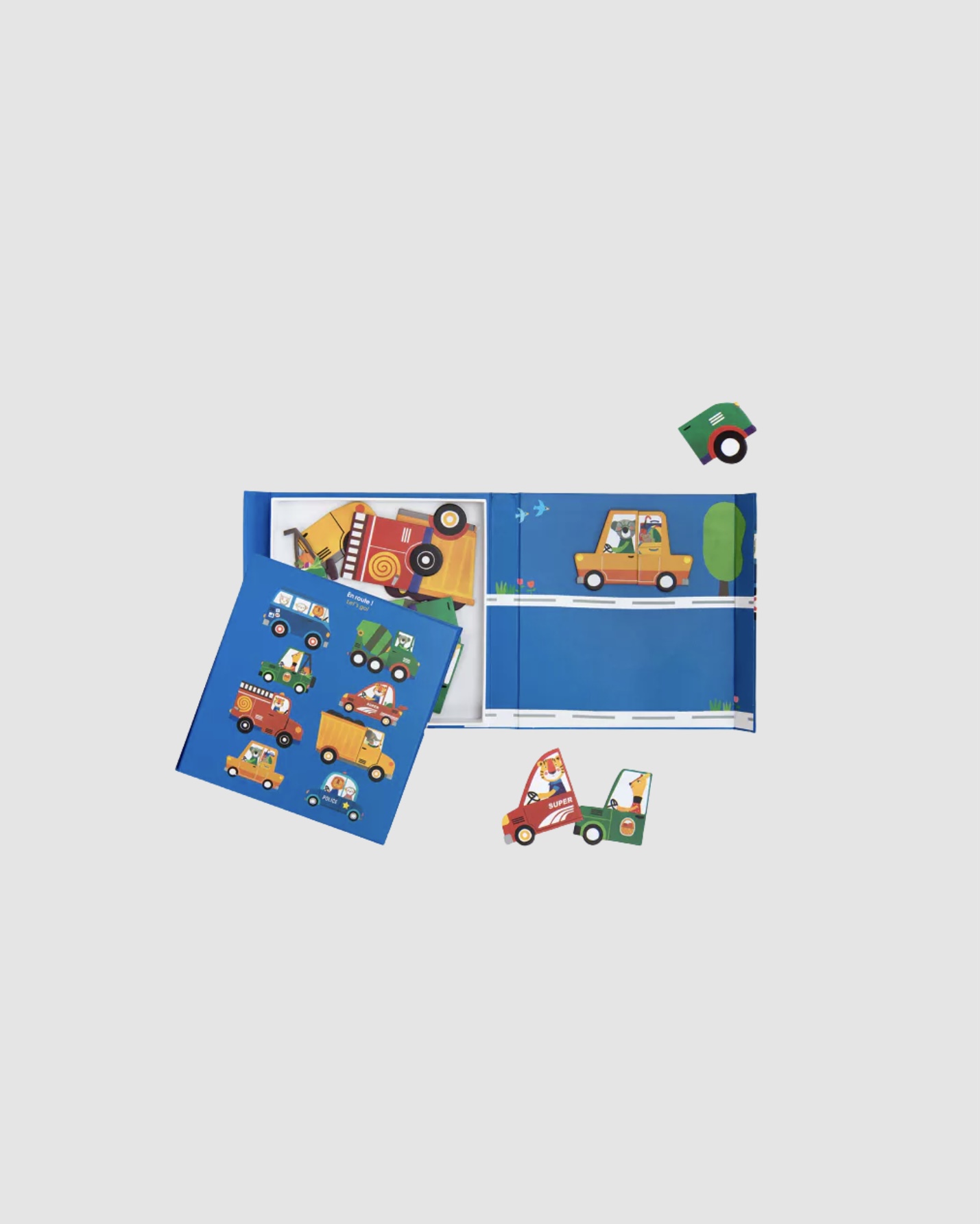 Le jeu magnétique véhicules Les Popipop Moulin Roty invite les enfants dès 3 ans à découvrir les véhicules du quotidien à travers une activité simple et amusante. Grâce à ses 20 magnets faciles à manipuler et à ses modèles illustrés, l’enfant peut s’amuser à recomposer les 8 véhicules proposés ou inventer des combinaisons originales. Le livre magnétique s’ouvre à plat, ce qui lui permet de jouer confortablement à la maison, en voyage ou chez les grands-parents.