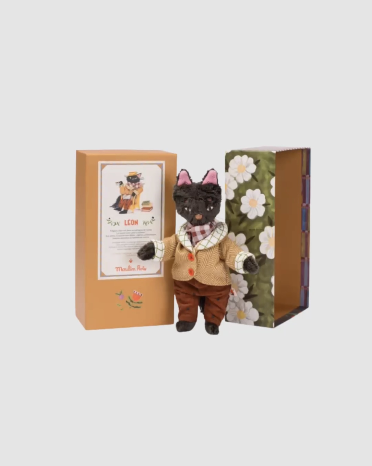 Avec son air distingué et son style irrésistible, Léon le chat Moulin Roty fait partie de la tendre collection Les Minouchkas. Ce félin poète, vêtu d’un pantalon marron, d’une veste en tweed et d’un foulard à carreaux, semble tout droit sorti d’un conte illustré.