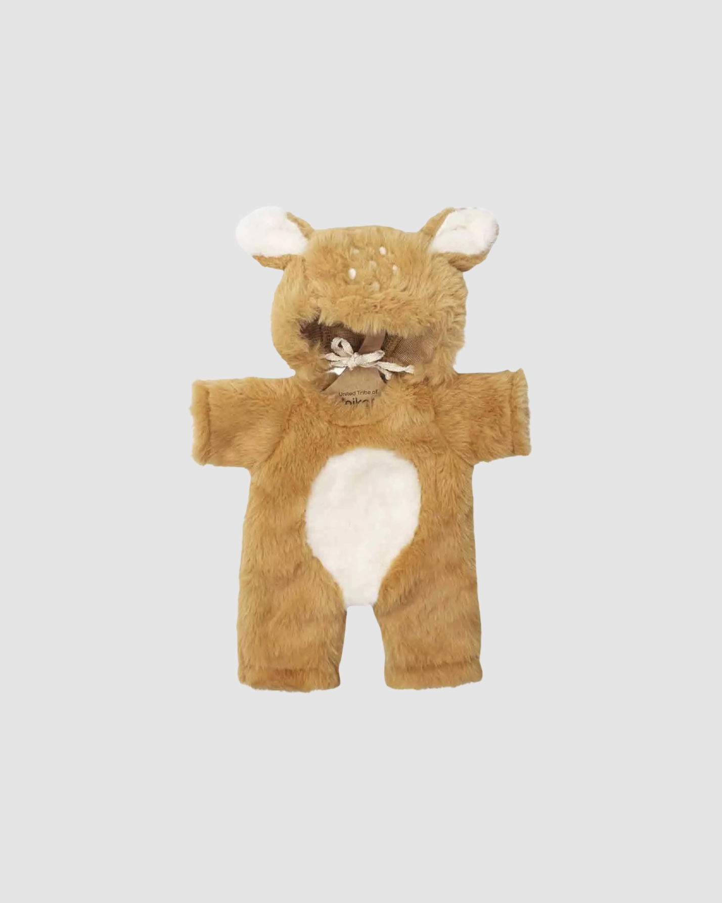 Avec sa matière douce et son design attendrissant, cette tenue transforme instantanément le poupon en petit faon craquant. Son coloris camel, ses oreilles délicates et son ventre blanc lui donnent beaucoup de charme. De plus, le petit nœud sous le menton apporte une finition raffinée, ce qui renforce encore son côté poétique.