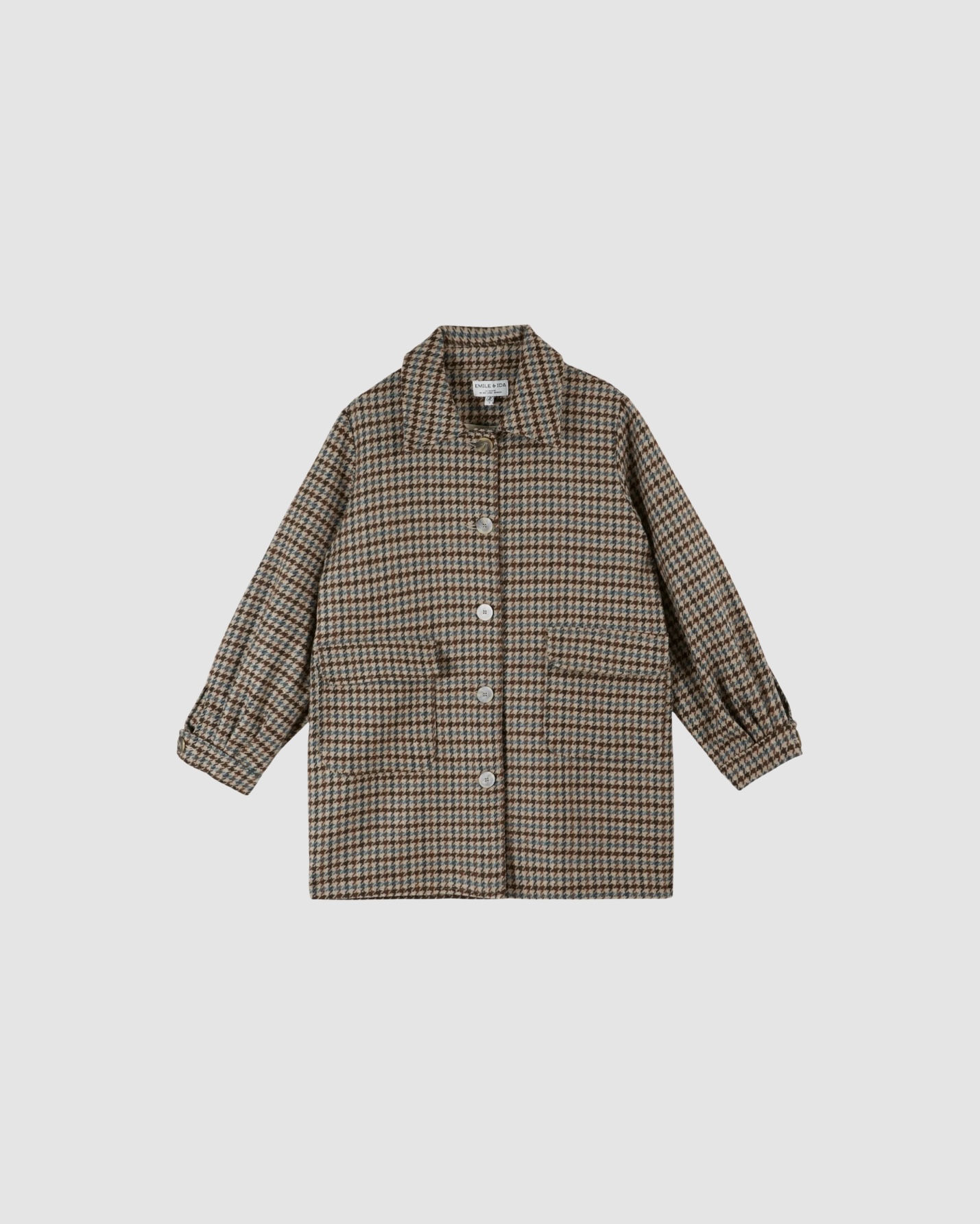 Le manteau pied de coq Émile et Ida est une pièce intemporelle qui apporte immédiatement du caractère à une tenue. Grâce à son motif pied de coq beige, marron et légèrement bleuté, il se distingue avec élégance tout en restant facile à assortir. Sa coupe droite assure une silhouette nette et confortable. Elle convient à toutes les morphologies et permet de glisser aisément un pull épais en dessous pendant les journées froides.