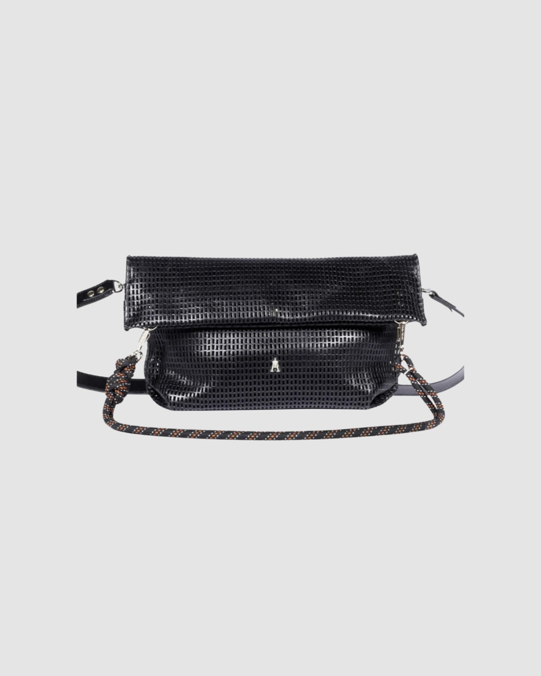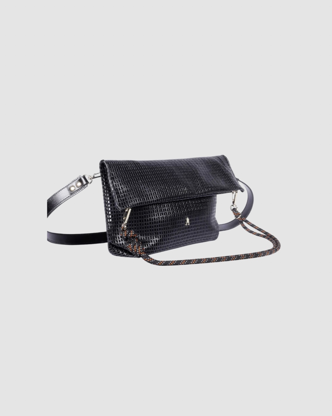 Doublé en coton bio, le sac offre un intérieur doux et résistant. La fermeture aimantée discrète garantit un usage simple et sécurisé au quotidien. Deux bandoulières interchangeables viennent compléter le modèle : une en cuir noir réglable de 80 cm pour un porté chic et épuré, et une corde d’escalade High Noir pour une allure plus moderne et audacieuse.