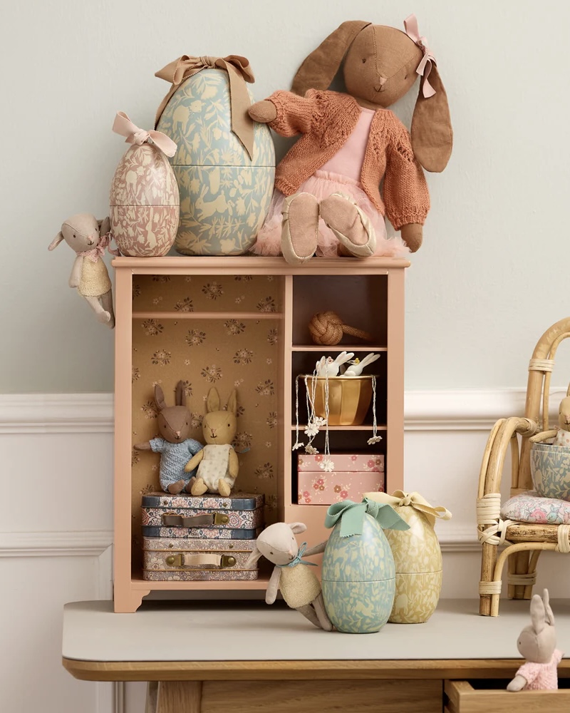 Cet Œuf de Pâques Maileg ne se limite pas à son aspect esthétique. En effet, il s’ouvre pour devenir une boîte de rangement pratique. Grâce à son format Medium, il permet d’accueillir davantage de petits objets, surprises ou douceurs.