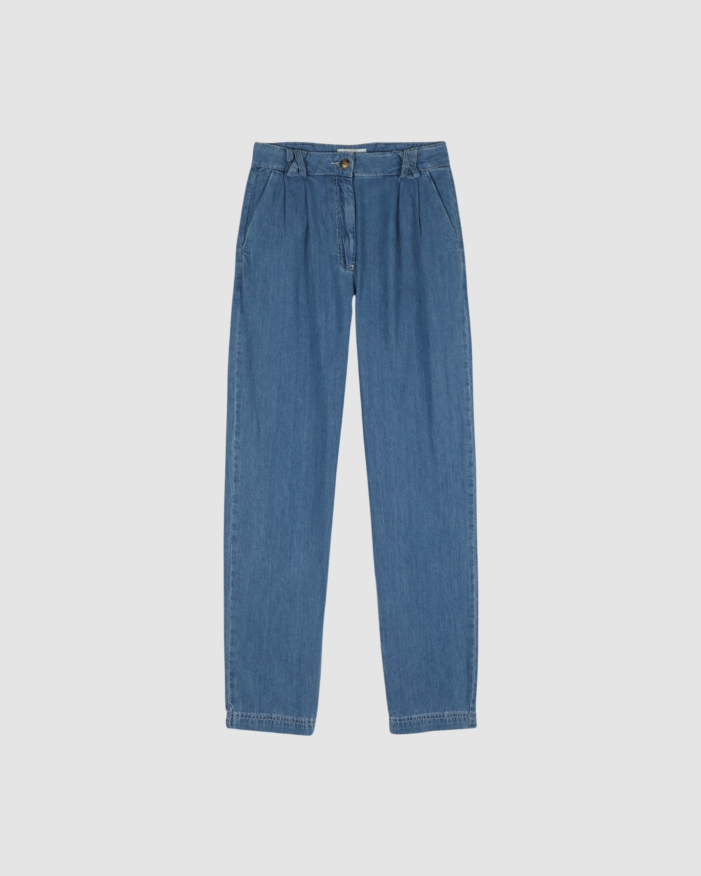 Un pantalon carotte denim bleu Émile et Ida à l’allure moderne
