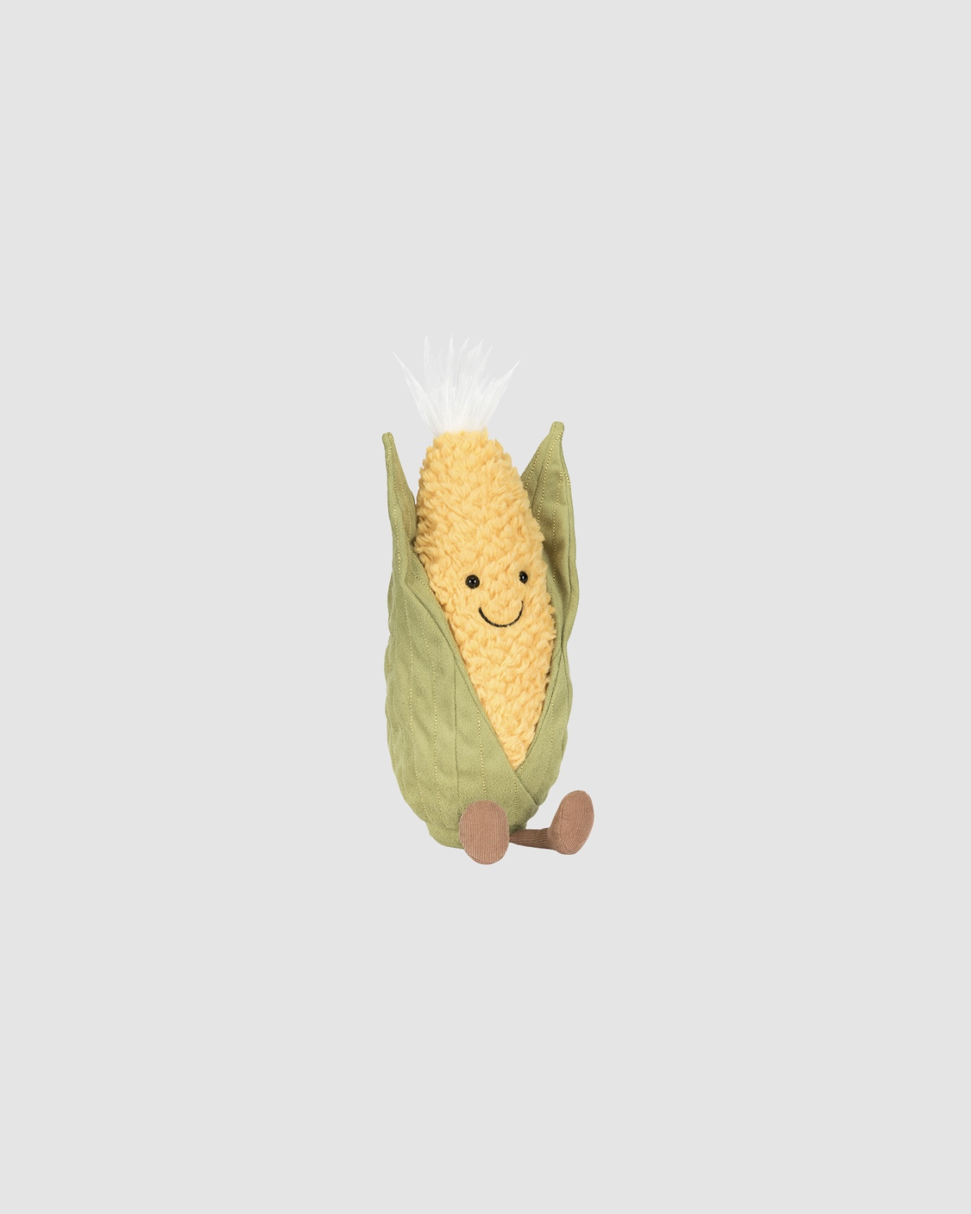 La Peluche Amuseables Sweetcorn Jellycat attire immédiatement le regard avec sa forme de maïs, ses petites jambes et son enveloppe verte qui évoque un manteau protecteur. Son expression douce et amusante en fait un personnage attachant dans l’univers de l’enfant.
