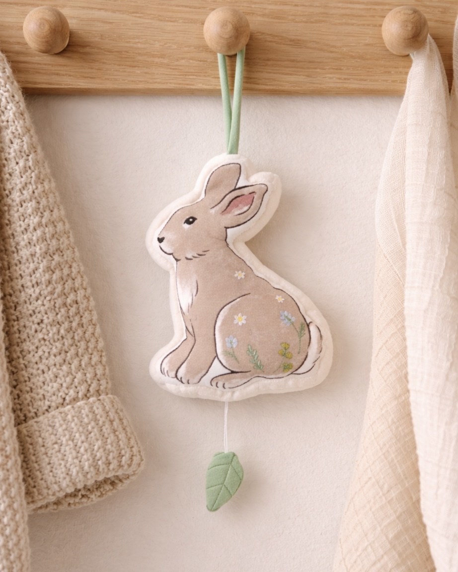 La Peluche Lapin Musical Beige Amadeus ne se contente pas d’être jolie. Elle propose aussi une fonction musicale pensée pour apaiser les tout-petits au quotidien.