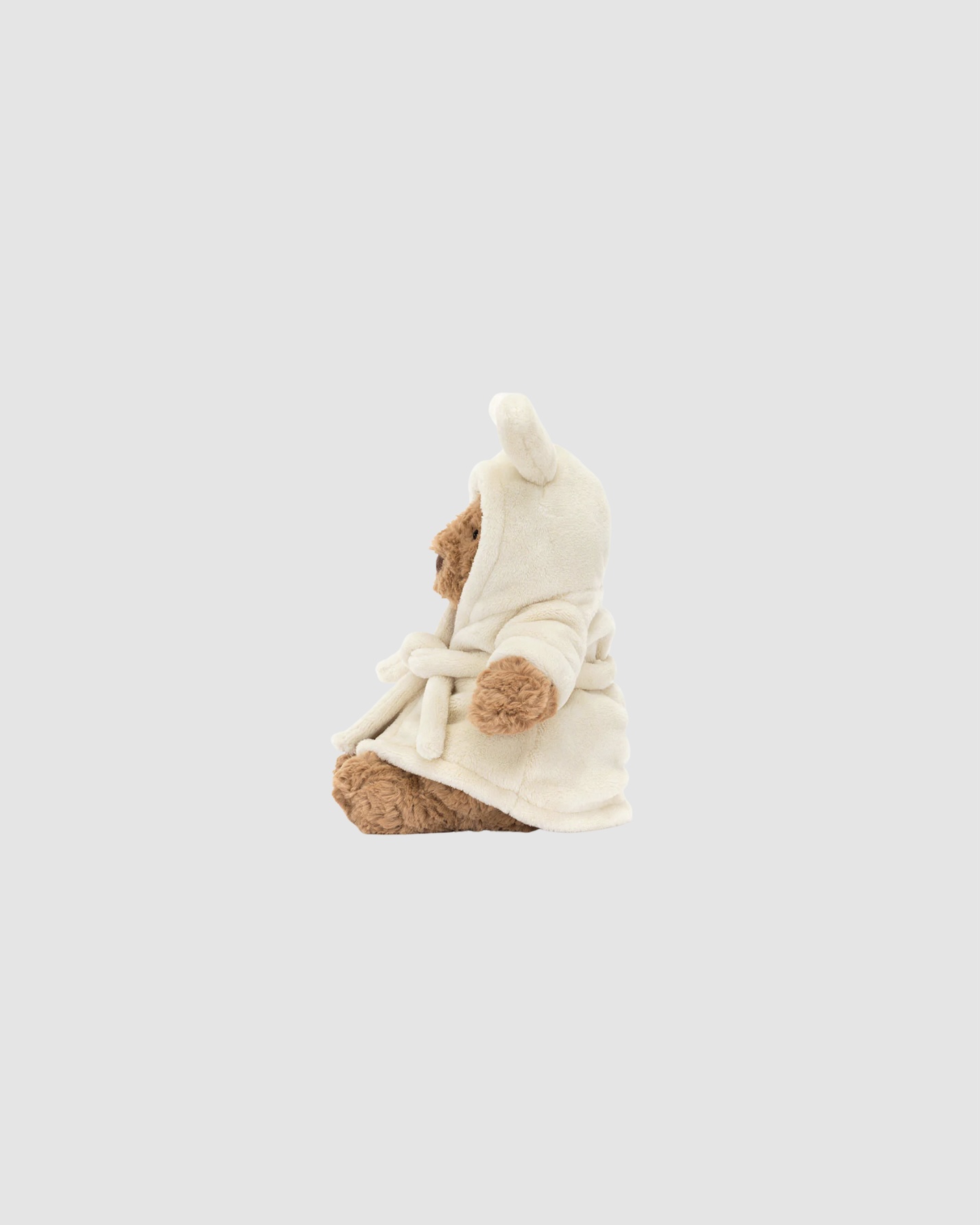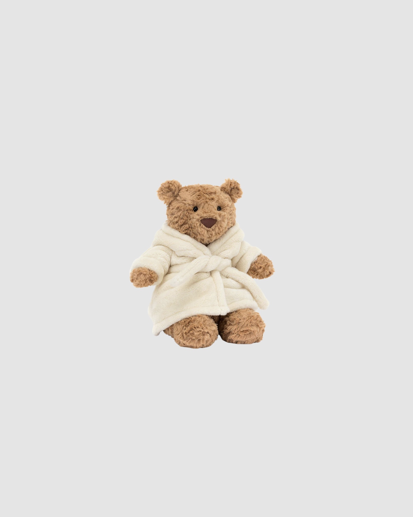 La Peluche Ours Bartholomew Jellycat en peignoir est un compagnon tendre et rassurant. Avec sa fourrure douce et sa tenue moelleuse, elle accompagne les enfants et les adultes dans leurs moments de détente.