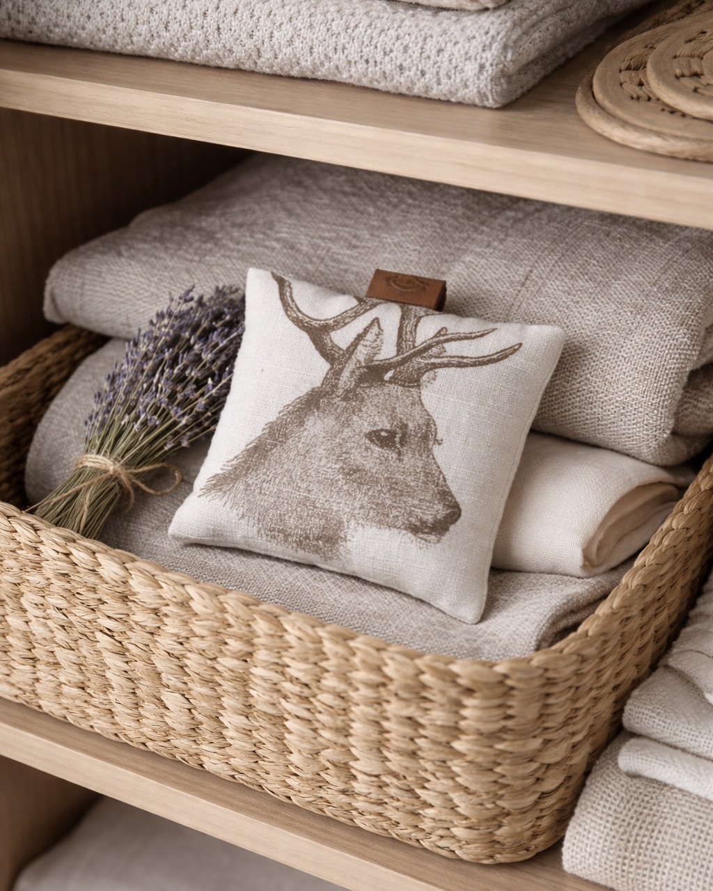 Grâce à son format compact, ce petit coussin parfumé cerf se glisse facilement dans les espaces du quotidien. Par ailleurs, il peut également être posé sur une étagère, dans une chambre ou une salle de bain, afin de créer une atmosphère chaleureuse et naturelle.
