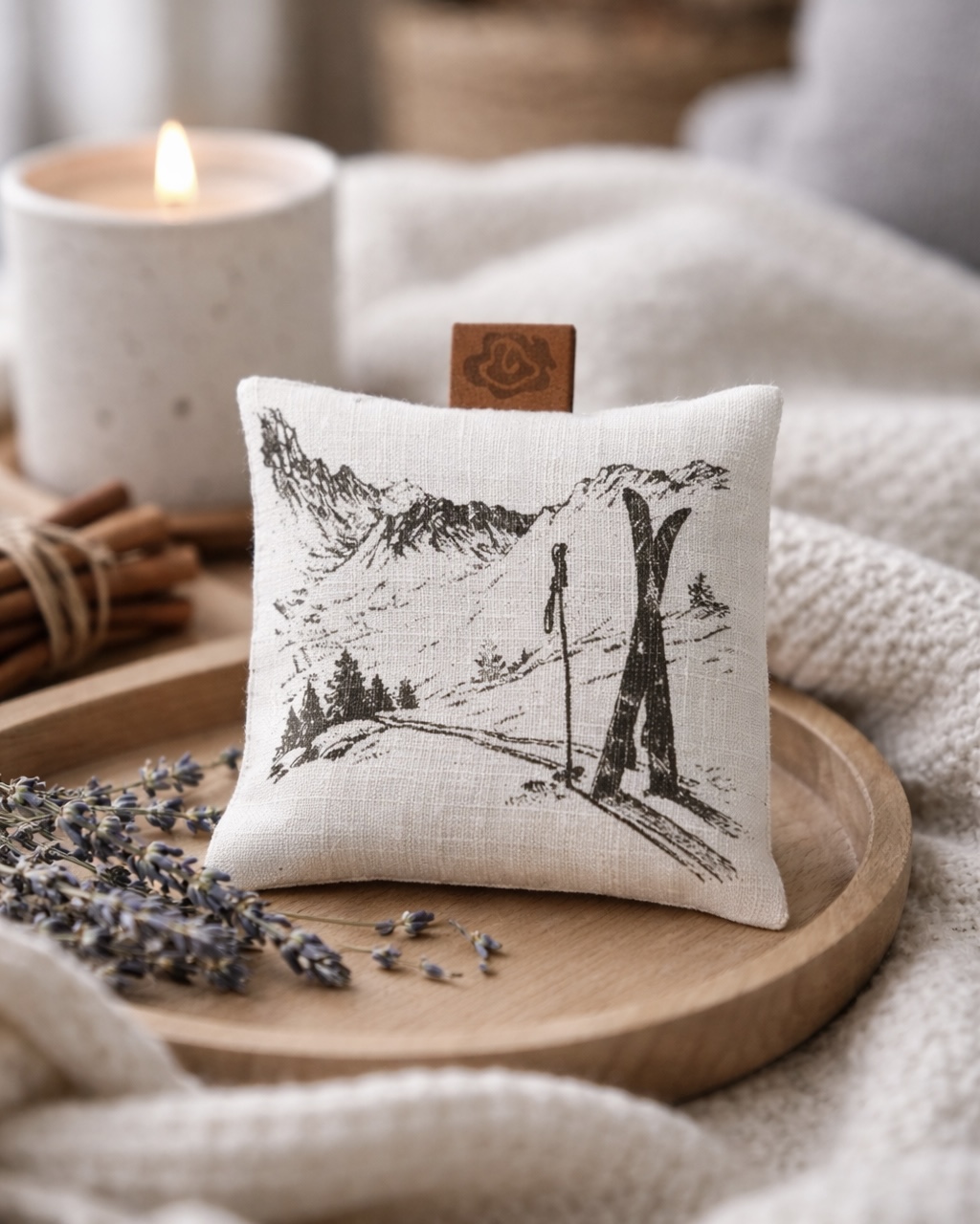 Le petit coussin parfumé Dorothee Lehnen est un objet textile à la fois décoratif et fonctionnel. Imprimé d’un délicat motif Ski, inspiré des paysages alpins, il évoque un univers doux, naturel et intemporel.
