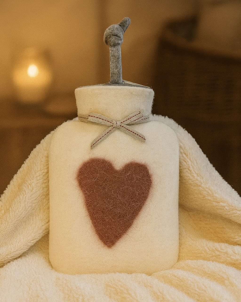 Cette bouillotte se distingue par son style délicat. Le cœur rouge, appliqué à la main, ajoute une touche chaleureuse. Par ailleurs, la fabrication artisanale allemande assure une finition soignée. Chaque détail est pensé pour offrir un objet à la fois beau et durable.