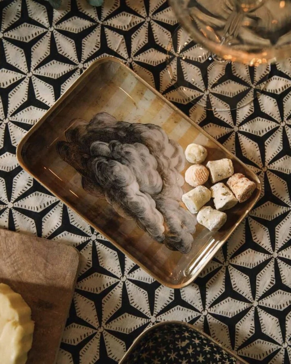 Le plateau Solo Nuage Boncoeurs est une pièce décorative au charme onirique, pensée comme un véritable objet d’art. Son motif nuage délicatement illustré, ses bordures dorées peintes à la main et son format compact en font un plateau aussi élégant que singulier.