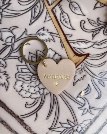 Un petit mot doux à offrir avec le cœur. Ce joli porte-clés en forme de cœur, en cuir rose poudré, est gravé du mot “Maîtresse” en lettres dorées, accompagné d’un petit cœur doré en relief. Un cadeau idéal pour remercier une maîtresse en fin d’année, ou simplement lui dire qu’on pense à elle.