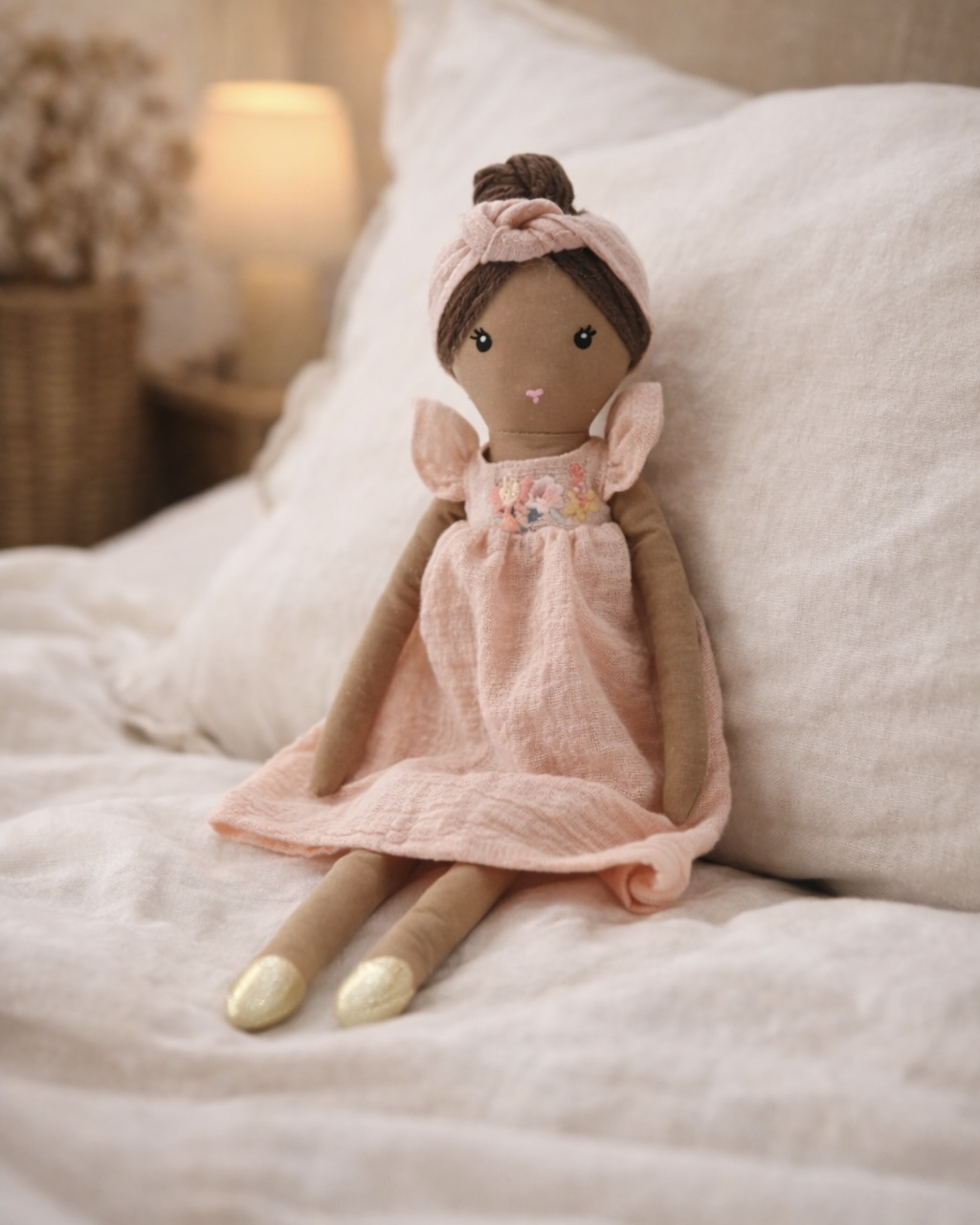 La Poupée Gemma Rose Amadeus est une jolie poupée en tissu conçue pour accompagner les enfants dans leurs premiers moments de jeu. Douce, légère et facile à attraper, elle séduit immédiatement par son univers tendre et raffiné. Avec sa robe rose poudré, son bandeau assorti et ses petits détails délicats, elle apporte une touche de poésie à la chambre comme aux instants de jeu.