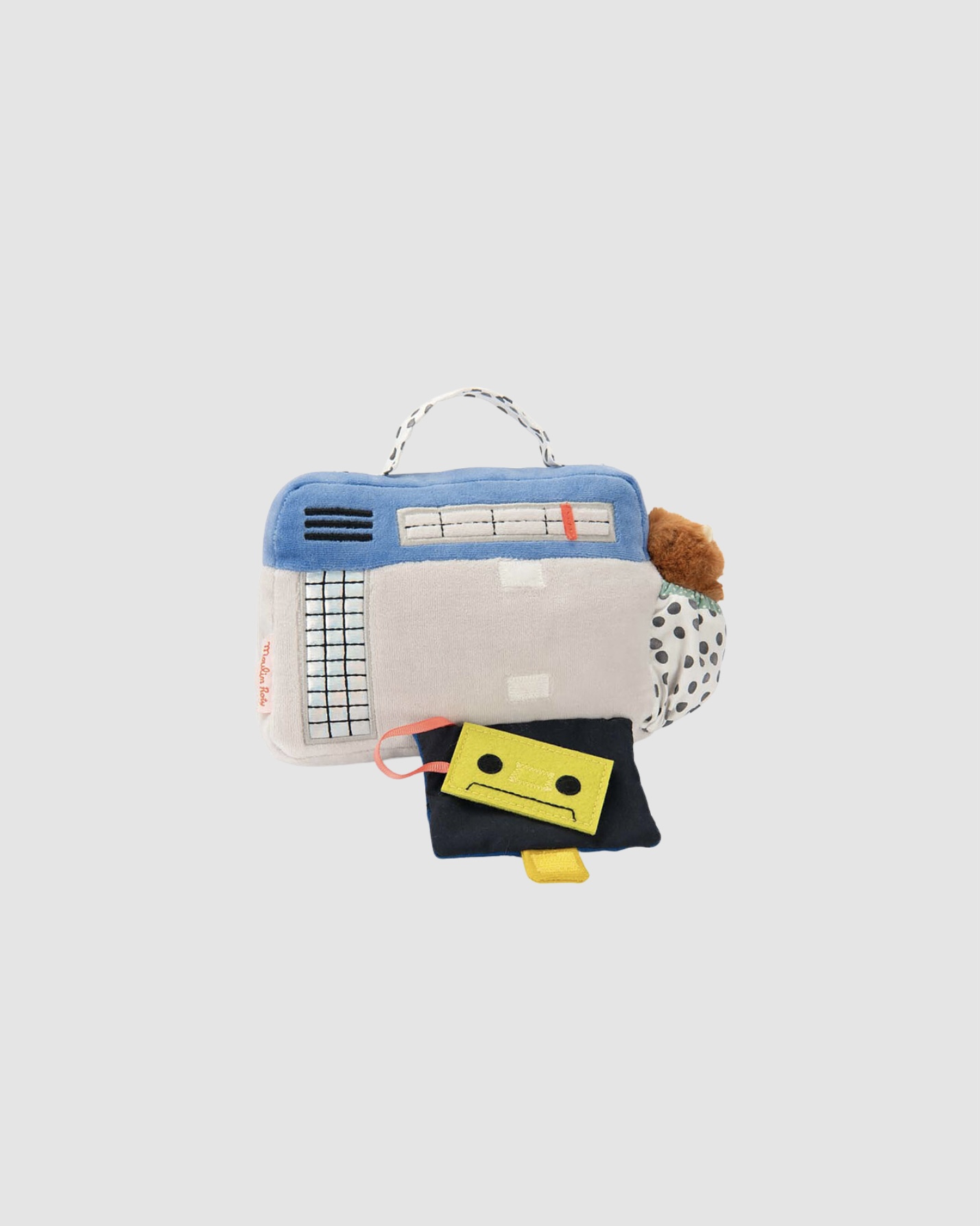 Le Radio cassette musical Moulin Roty de la collection Puce & Pilou évoque toute la tendresse et la créativité de la marque. Avec son look rétro inspiré des années 80, cette peluche musicale séduit autant les enfants que les parents nostalgiques. Conçue en coton et polyester, elle diffuse une douce mélodie qui aide bébé à s’endormir paisiblement.