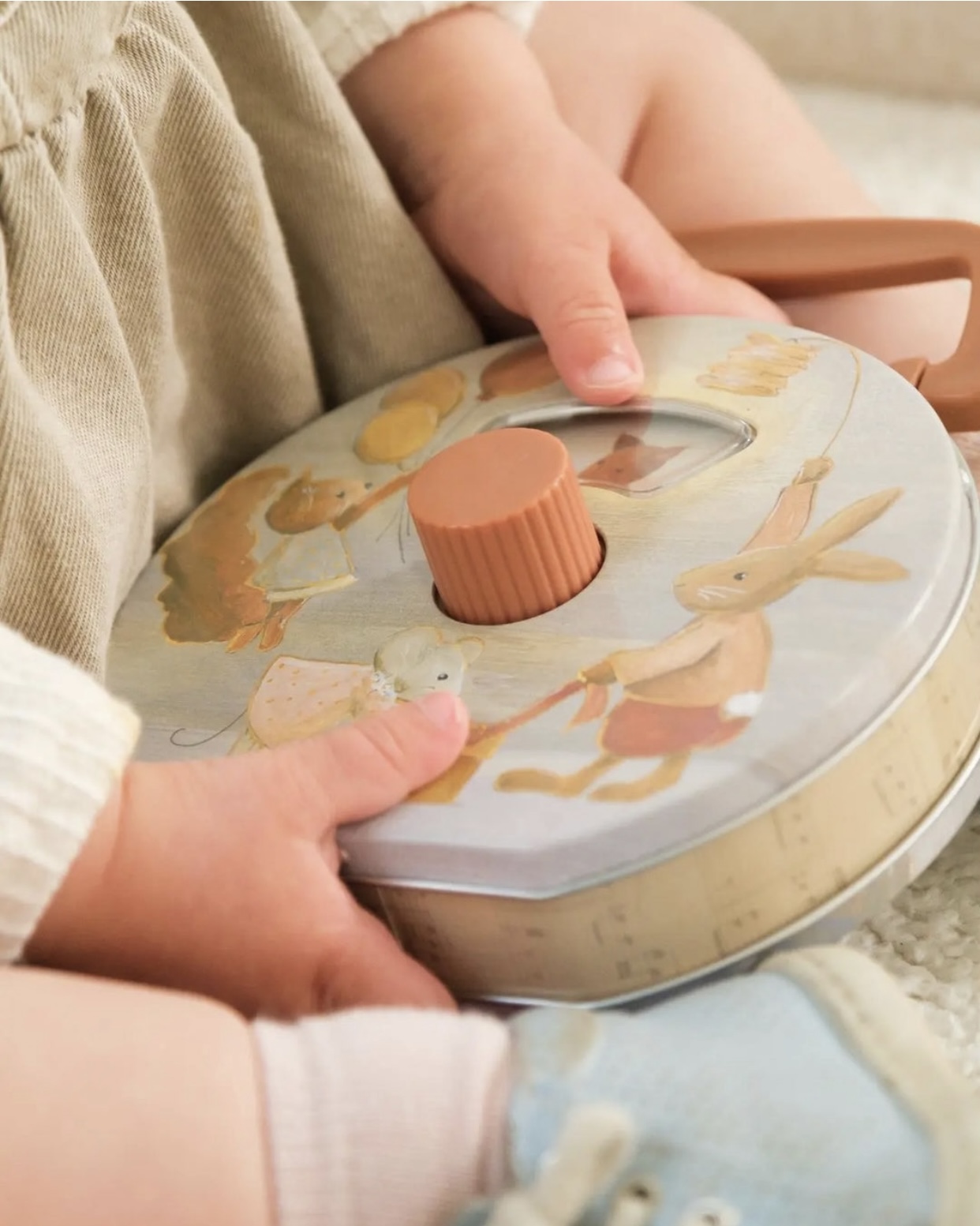 La radio musicale Friends Egmont Toys est à la fois un objet décoratif et un jouet d’éveil. Elle s’intègre parfaitement dans une chambre d’enfant, sur une étagère ou dans un univers au style vintage. Les illustrations délicates de petits animaux — lapin, souris, écureuil et grenouille — invitent à rêver et à imaginer de jolies histoires.