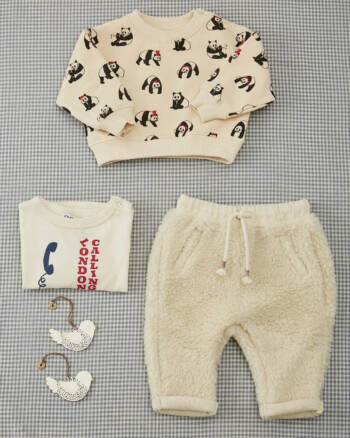 La bavette et le dos sont doublés en velours pour encore plus de douceur. Le bas des jambes, doublé en gaze de coton ton sur ton, permet de réaliser un revers soigné et confortable.