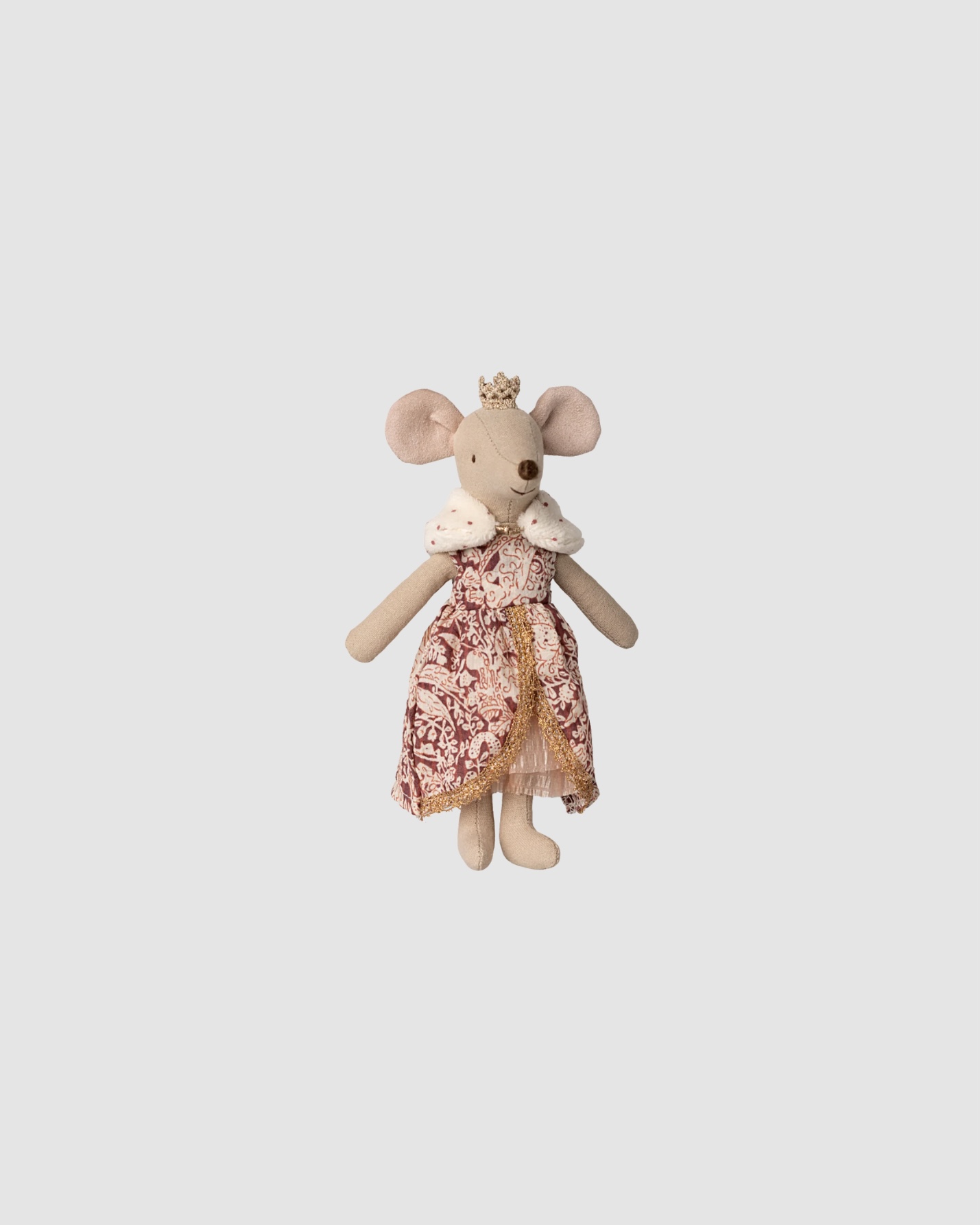 La Souris Reine Maileg séduit par son allure raffinée et son style délicatement travaillé. Sa robe royale aux motifs élégants, soulignée de finitions soignées, lui confère une présence majestueuse. Sa couronne complète parfaitement cette tenue d’exception, faisant de cette souris Maman un personnage central de l’univers du château Maileg.