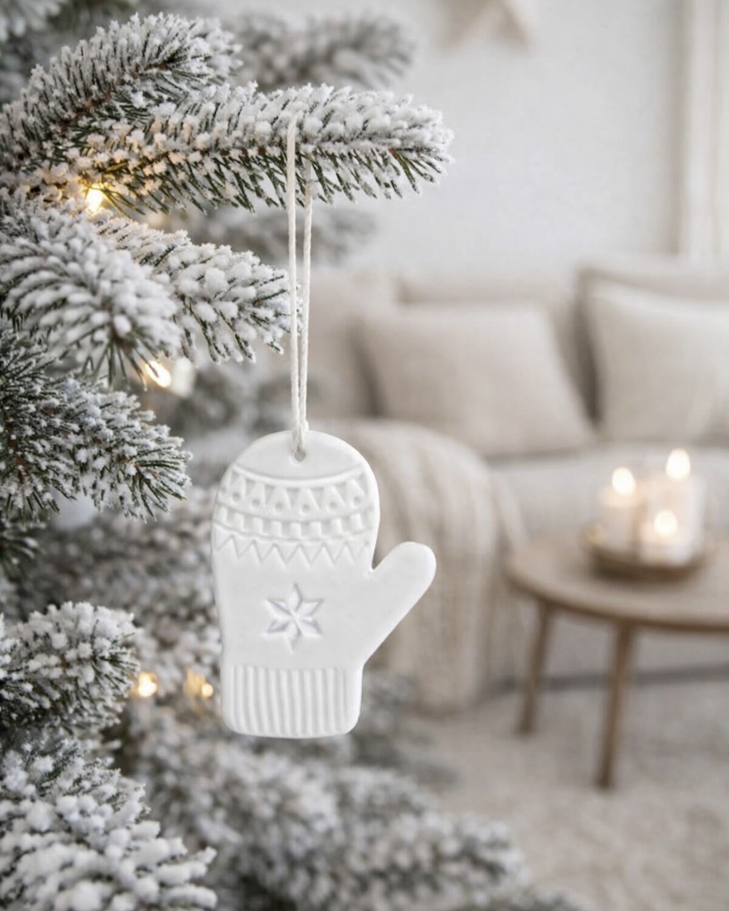 Grâce à son format compact, cette suspension se glisse facilement sur un sapin de Noël, mais peut également être accrochée à une branche décorative, une couronne ou intégrée à une composition festive. Sa teinte blanche et lumineuse s’accorde naturellement avec tous les styles de décoration, du plus traditionnel au plus contemporain.