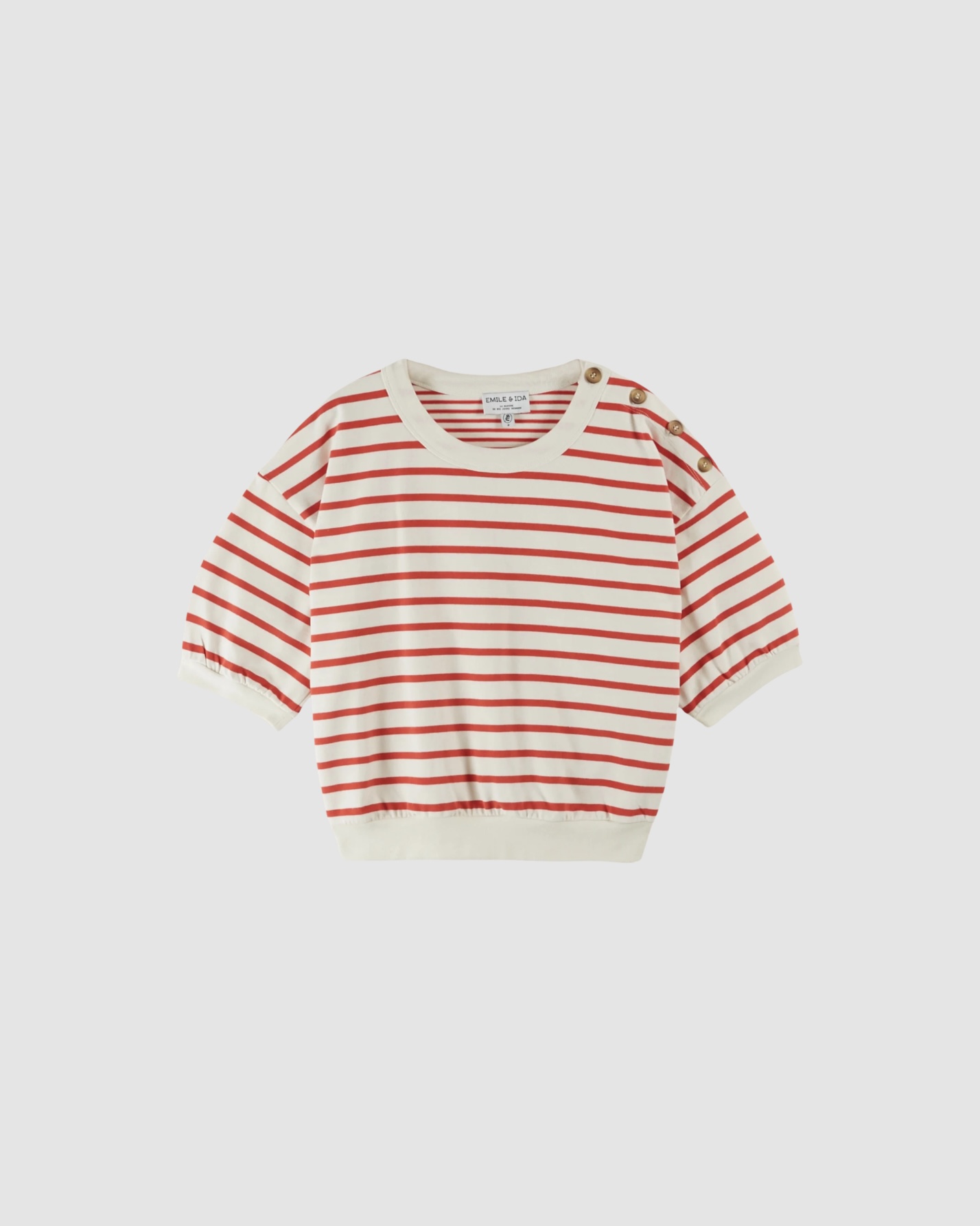 Fabriqué au Portugal dans un coton biologique de qualité, ce sweat marinière rouge coton bio privilégie des matières responsables et durables. Il s’intègre facilement dans une garde-robe confortable et intemporelle, pensée pour accompagner les enfants au fil des saisons.