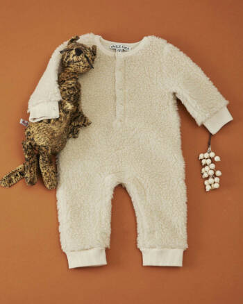 Sweat tout doux en sherpa écru, chaud et moelleux. Confort idéal pour l’hiver. Boutons à l’épaule pour un habillage facile. Par Emile et Ida.