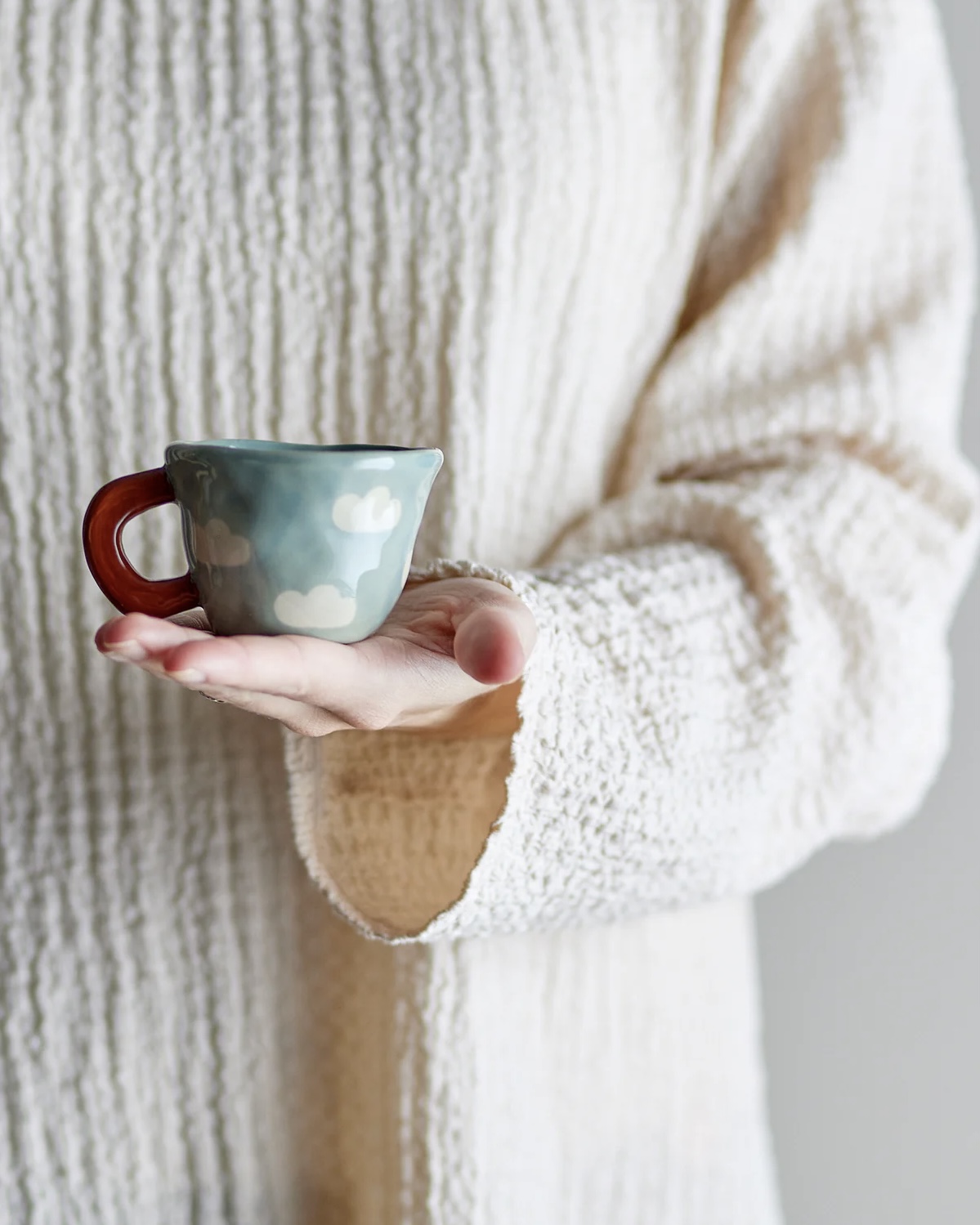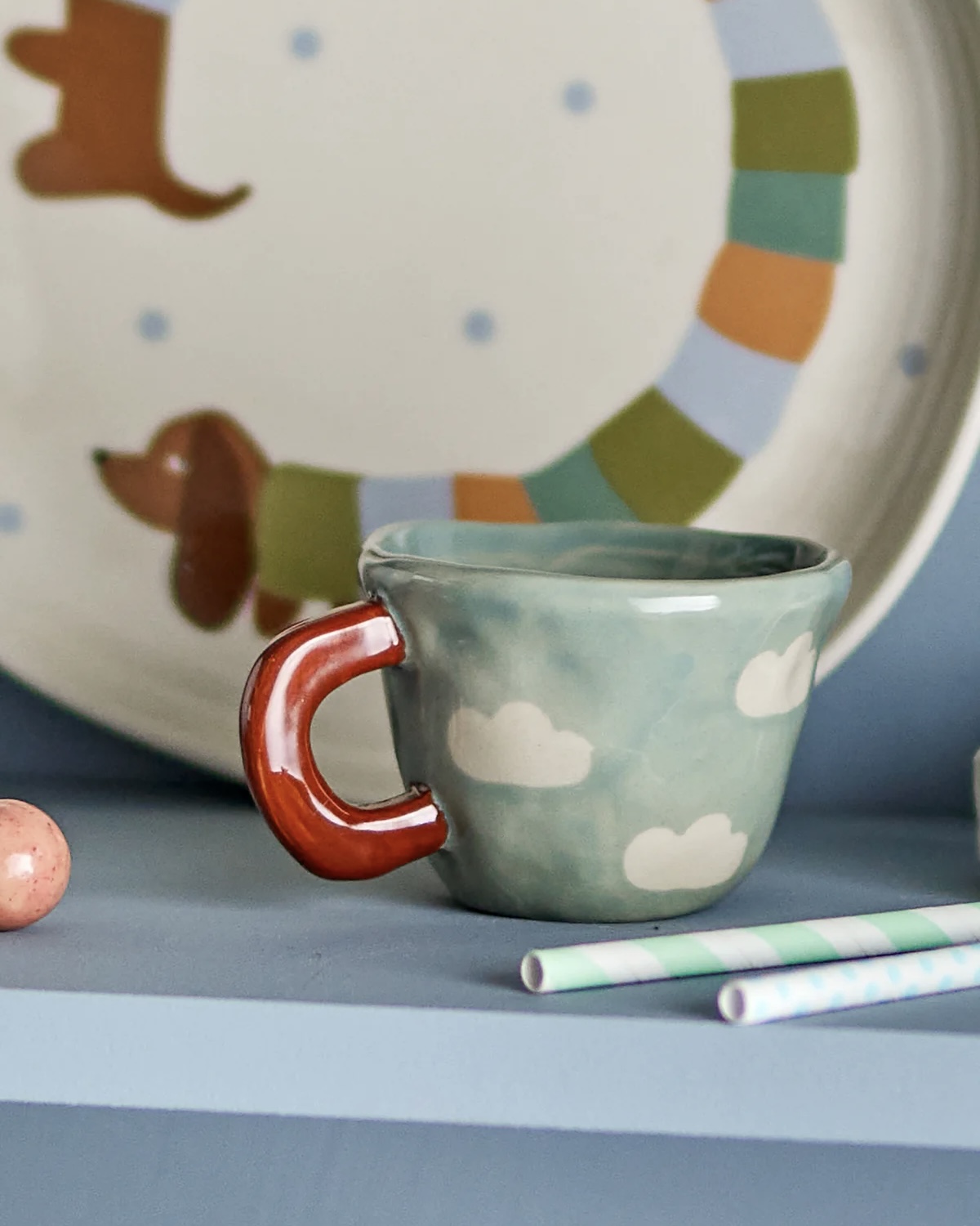La Tasse Nini bleu clair Bloomingville séduit par son décor de petits nuages, sa teinte douce et son format mini plein de charme. En grès peint à la main, elle accompagne aussi bien un chocolat chaud pour les petits qu’un espresso pour les grands.