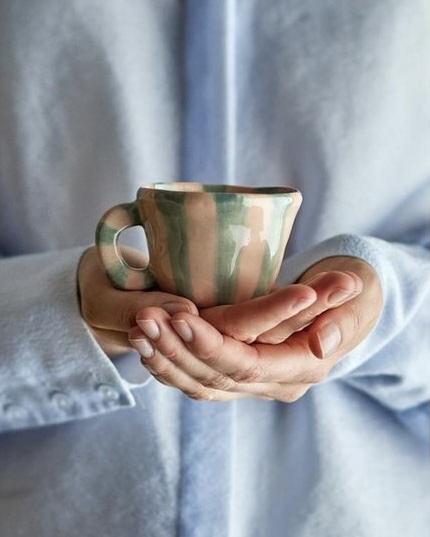 La Tasse Nini multicolore Bloomingville séduit par ses rayures délicates et ses nuances douces. En grès peint à la main, elle apporte une touche artistique et chaleureuse à chaque pause café ou goûter.