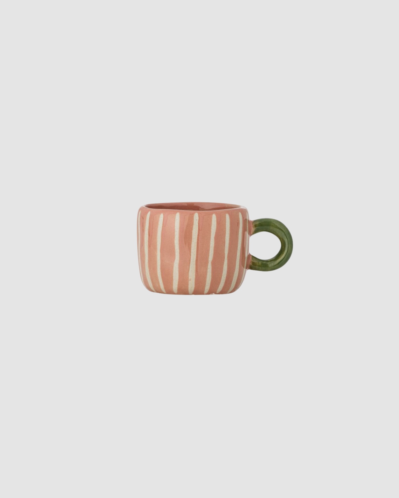 La Tasse Nini rose Bloomingville séduit par ses rayures délicates, sa couleur douce et son format compact plein de charme. En grès peint à la main, elle accompagne aussi bien un chocolat chaud qu’un espresso.